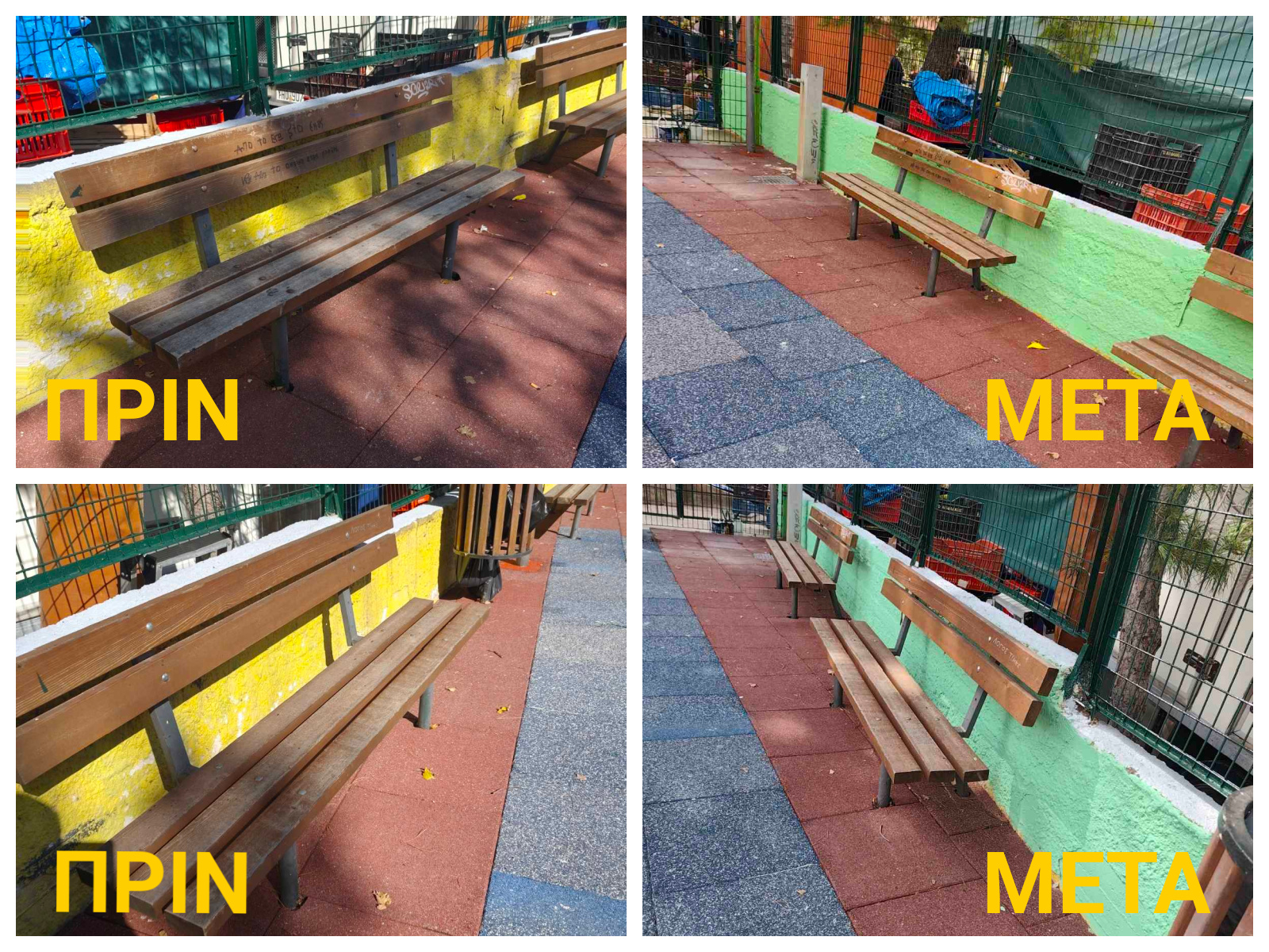 • Εργασίες βαφής πραγματοποιήθηκαν στα παγκάκια, τα κάγκελα και τα τοιχία, βελτιώνοντας την αισθητική του χώρου.