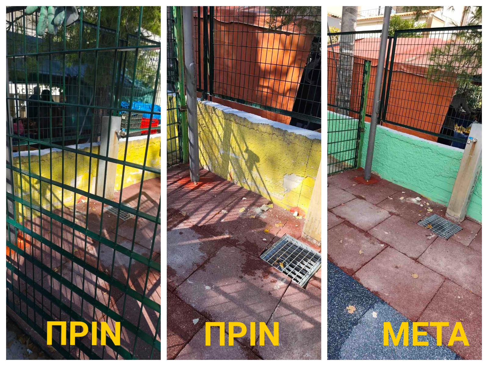 Συγκεκριμένα, πραγματοποιήθηκαν εργασίες βαφής στα παγκάκια, τα κάγκελα και τα τοιχία της παιδικής χαράς και τελικά παραδόθηκε ένα αποτέλεσμα αισθητά αναβαθμισμένο αισθητικά.