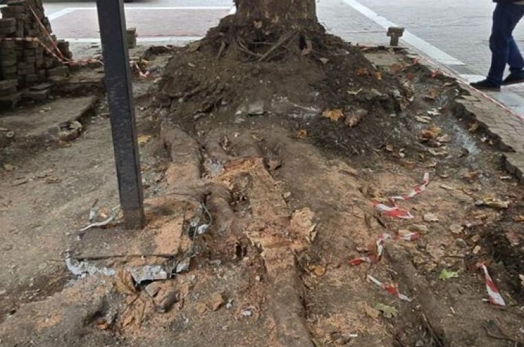 Σε αυτοψία που έγινε, διαπιστώθηκε ότι παράτυπα και αυθαίρετα, ο ιδιώτης έκοψε σημαντικό τμήμα της ρίζας δέντρου, με αποτέλεσμα να κινδυνεύει και η σταθερότητα, αλλά και η βιωσιμότητά του.