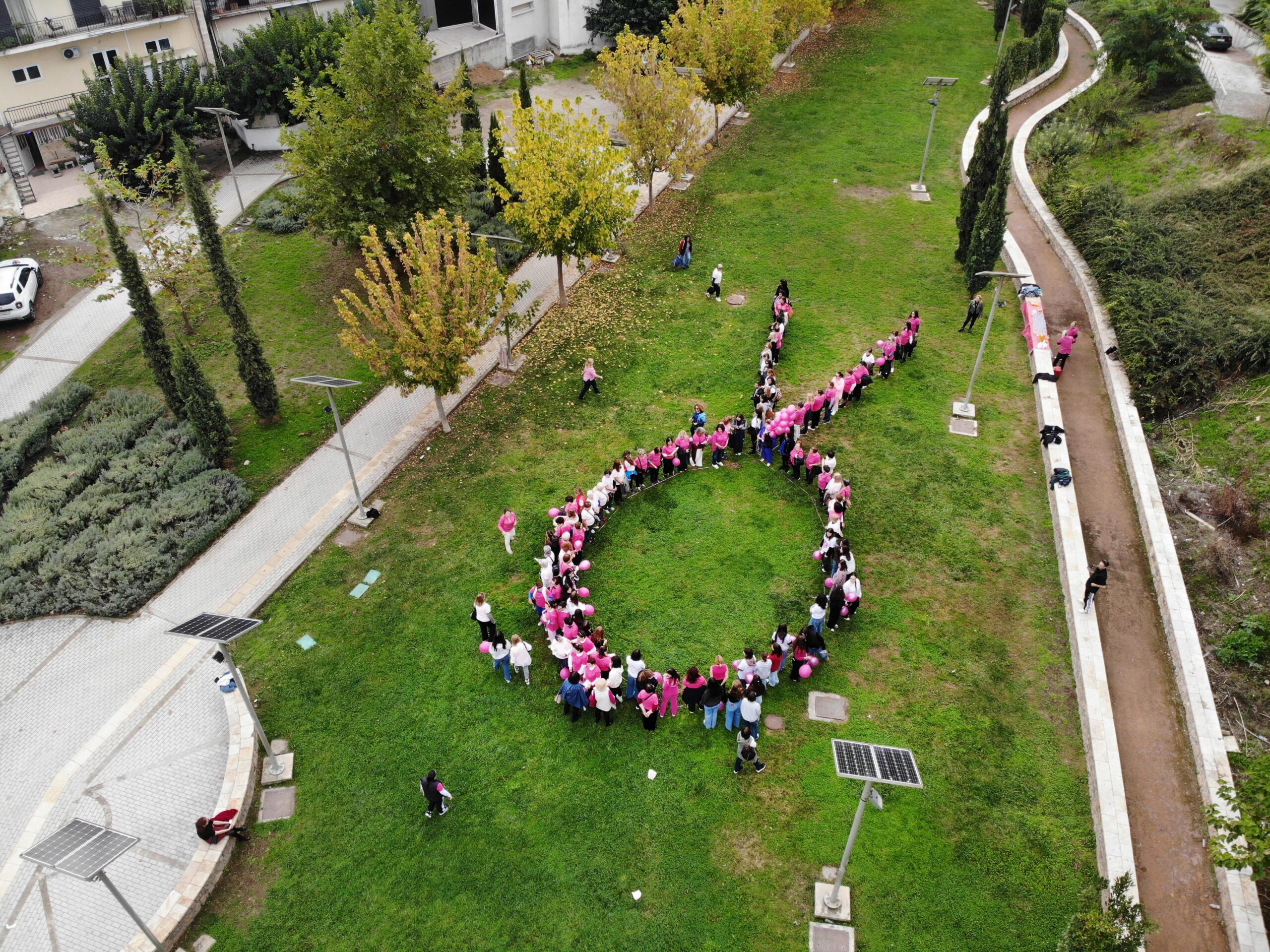 - Στο τέλος, δημιουργήθηκε ανθρώπινος ροζ φιόγκος ως σύμβολο της ενημέρωσης και της αλληλεγγύης.
