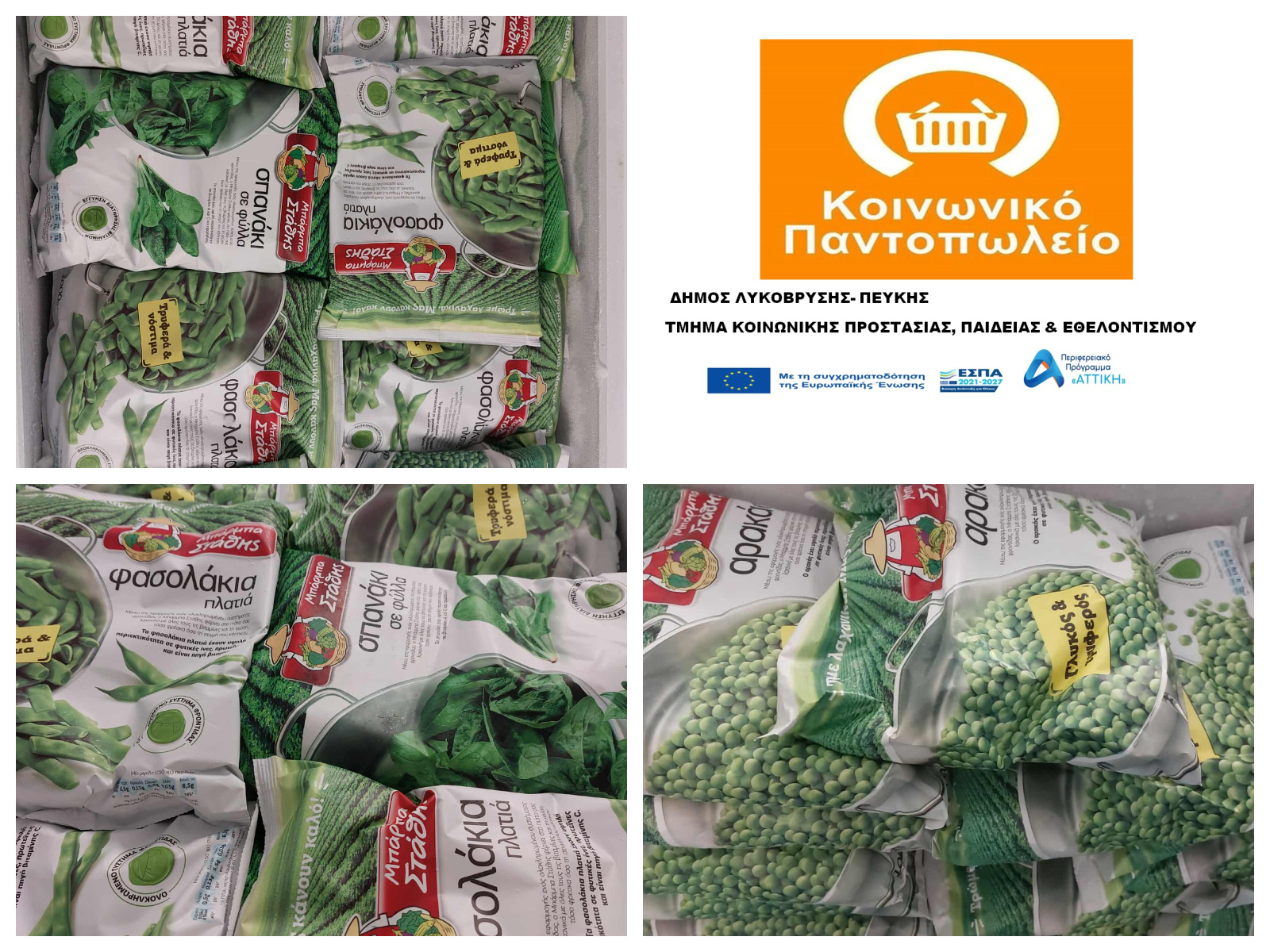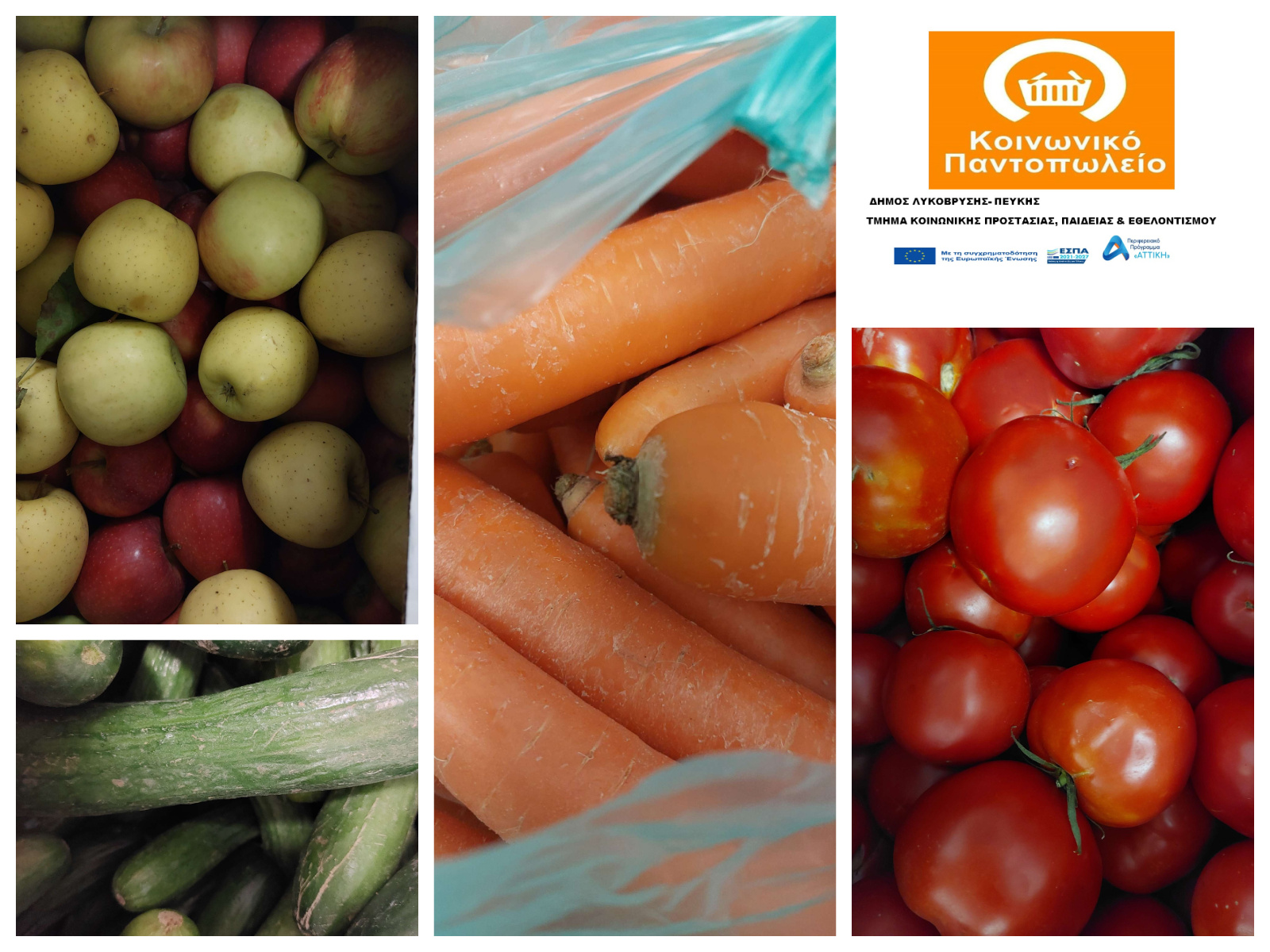 Το Κοινωνικό Παντοπωλείο Λυκόβρυσης-Πεύκης ενισχύθηκε με νέες δωρεές προϊόντων από την εταιρεία βιολογικών προϊόντων ΒΙΟ – ΥΓΕΙΑ Α.Ε, το «Μαζί Για Το Παιδί» και τη λαϊκή αγορά της Λυκόβρυσης, προσφέροντας φυτικά επιδόρπια, κατεψυγμένα λαχανικά και φρέσκα φρούτα και λαχανικά.