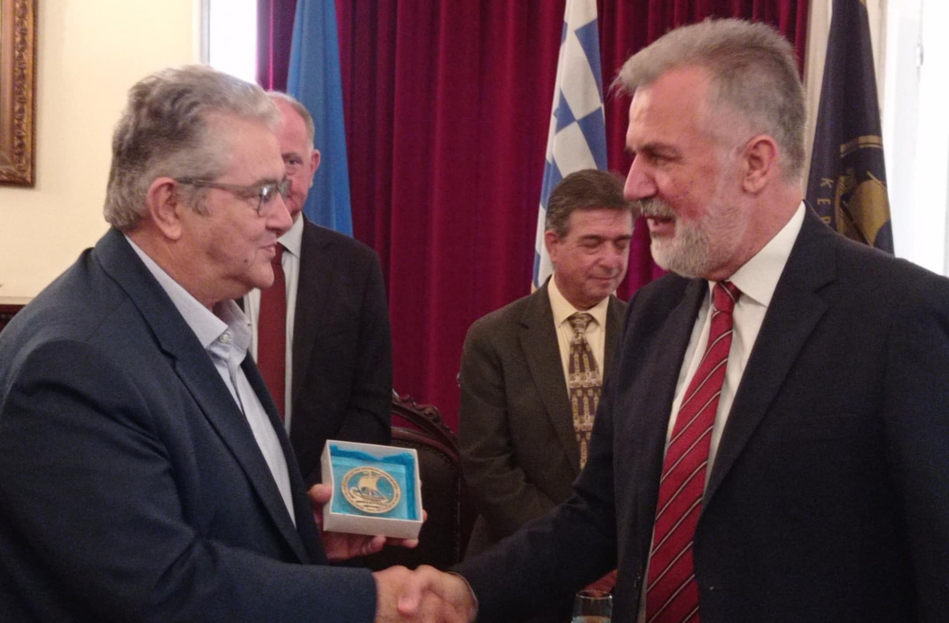 Τον Γενικό Γραμματέα της Κεντρικής Επιτροπής του ΚΚΕ, Δημήτρη Κουτσούμπα, υποδέχθηκε σήμερα στο Ιστορικό Δημαρχείο ο Δήμαρχος Κεντρικής Κέρκυρας και Διαποντίων Νήσων, Στέφανος Πουλημένος.