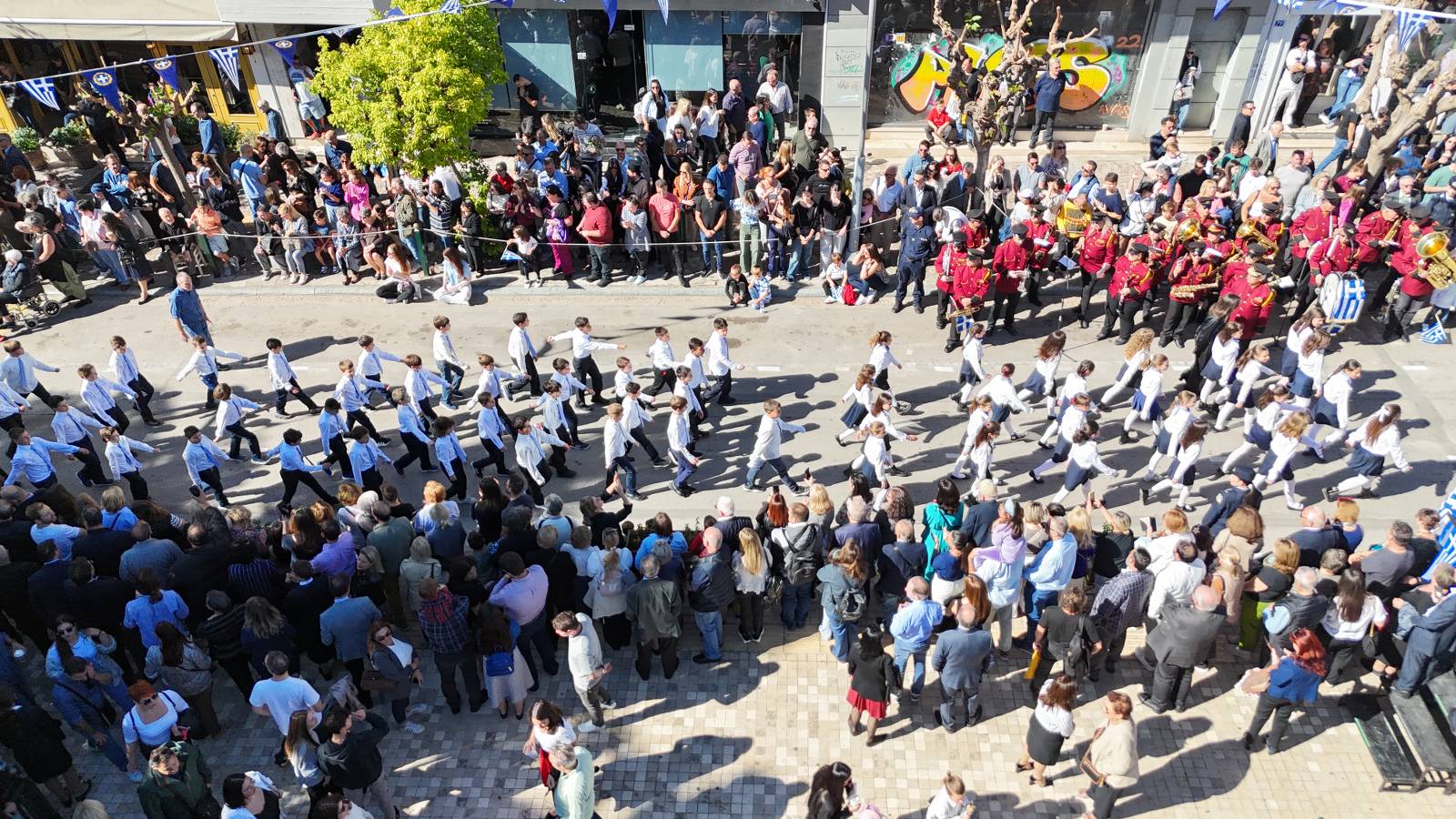 Ακολούθησε η μαθητική παρέλαση των σχολείων της πόλης, των πολιτιστικών συλλόγων, των Οδηγών, των Προσκόπων και των εθελοντών Πολιτικής Προστασίας του Δήμου. Οι Μαρουσιώτες χειροκρότησαν με υπερηφάνεια τα παιδιά που παρέλασαν, τιμώντας με τη σειρά τους την ιστορική μνήμη και τις αξίες που ενώνουν το έθνος.