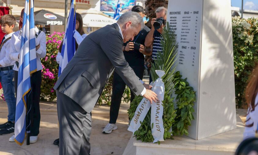 Ο Δήμαρχος Ηρακλείου κατέθεσε στεφάνι στο μνημείο Ηρώων της Νέας Αλικαρνασσού και στον μνημείο του Αγνώστου Στρατιώτη στην πλ. Ελευθερίας, αντάλλαξε ευχές με πολίτες και εκπροσώπους αρχών και φορέων, παρακολούθησε τις παρελάσεις στις οποίες συμμετείχαν σχολεία, αθλητικά σωματεία, εθελοντικές ομάδες, σύλλογοι και ένοπλες δυνάμεις και σε δήλωσή του αναφέρθηκε στην ευθύνη όλων απέναντι στη νεολαία: