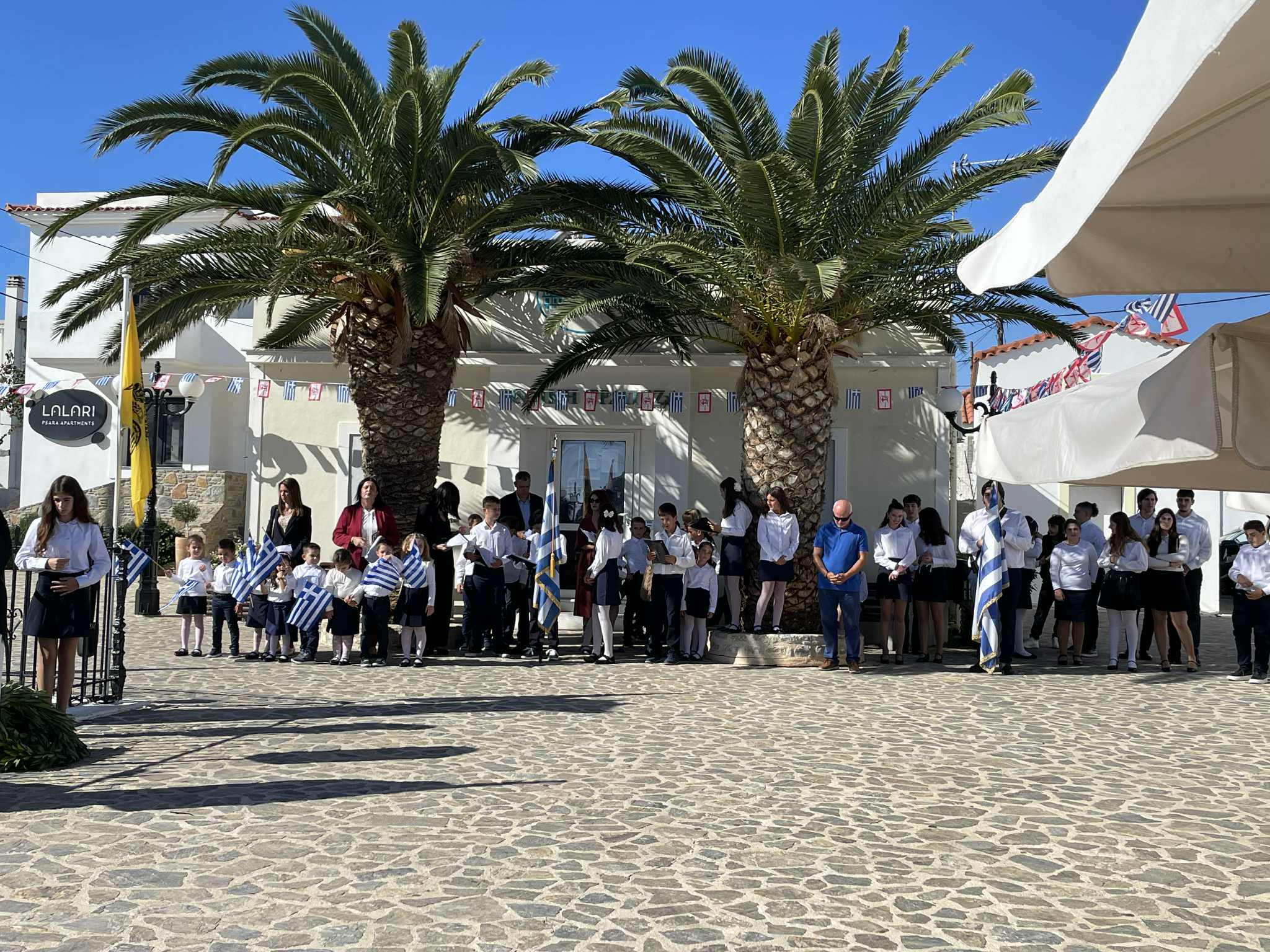 Η τελετή ολοκληρώθηκε με την καθιερωμένη μαθητική παρέλαση κατά μήκος της παραλιακής οδού, που απέσπασε θερμό χειροκρότημα από τους παρευρισκόμενους.