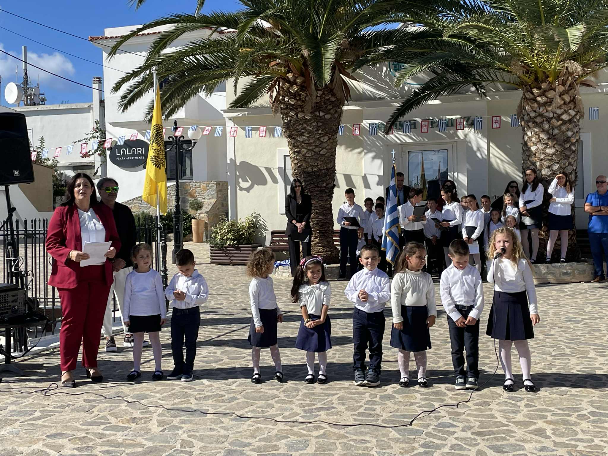 Αμέσως μετά, οι μαθητές του Νηπιαγωγείου και του Δημοτικού Σχολείου απήγγειλαν ποιήματα, μεταφέροντας με παιδικές φωνές τα μηνύματα της ημέρας.