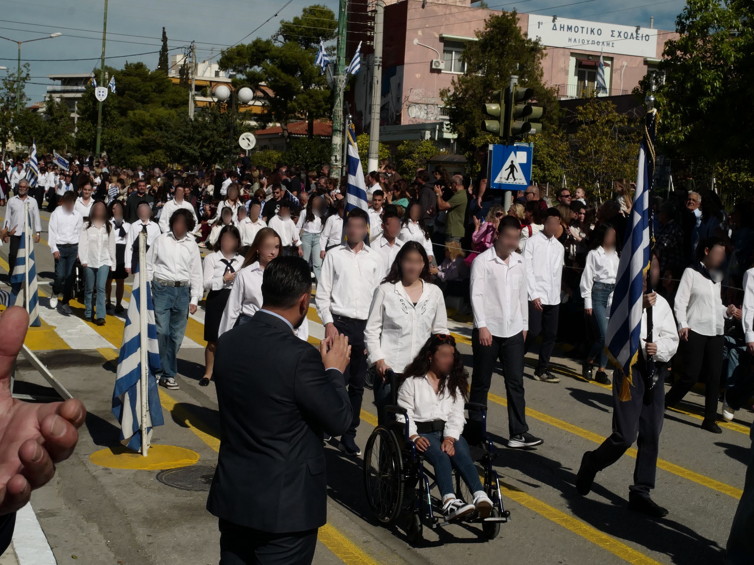 Παρέλασαν το 1ο Δημοτικό Σχολείο Ηλιούπολης, το 2ο Δημοτικό Σχολείο Ηλιούπολης, το 3ο Δημοτικό Σχολείο Ηλιούπολης, το 4ο Δημοτικό Σχολείο Ηλιούπολης, το 5ο Δημοτικό Σχολείο Ηλιούπολης, το 6ο Δημοτικό Σχολείο Ηλιούπολη, το 7ο Δημοτικό Σχολείο Ηλιούπολης, το 8ο Δημοτικό Σχολείο Ηλιούπολης, το 9ο Δημοτικό Σχολείο Ηλιούπολης, το 10ο Δημοτικό Σχολείο Ηλιούπολης, το 11ο Δημοτικό Σχολείο Ηλιούπολης, το 12ο Δημοτικό Σχολείο Ηλιούπολης, το 13ο Δημοτικό Σχολείο Ηλιούπολης, το 15ο Δημοτικό Σχολείο Ηλιούπολης, το 17ο Δημοτικό Σχολείο Ηλιούπολης, το 20ο Δημοτικό Σχολείο Ηλιούπολης, το 21ο Δημοτικό Σχολείο Ηλιούπολης, το Δημοτικό Σχολείο των Ιδιωτικών Εκπαιδευτηρίων ΘΕΟΜΗΤΩΡ, το Δημοτικό Σχολείο των Ιδιωτικών Εκπαιδευτηρίων ΣΥΓΧΡΟΝΗ ΠΑΙΔΕΙΑ, το 1ο Γυμνάσιο Ηλιούπολης, το 2ο Γυμνάσιο Ηλιούπολης, το 3ο Γυμνάσιο Ηλιούπολης, το 4ο Γυμνάσιο Ηλιούπολης, το 7ο Γυμνάσιο Ηλιούπολης, το Γυμνάσιο των Ιδιωτικών εκπαιδευτηρίων ΘΕΟΜΗΤΩΡ, το 1ο Λύκειο Ηλιούπολης, το 2ο Λύκειο Ηλιούπολης, το 3ο Λύκειο Ηλιούπολης, το 4ο Λύκειο Ηλιούπολης, το 5ο Λύκειο Ηλιούπολης, το 1ο ΕΠΑΛ Ηλιούπολης, το Λύκειο των Ιδιωτικών Εκπαιδευτηρίων ΘΕΟΜΗΤΩΡ.