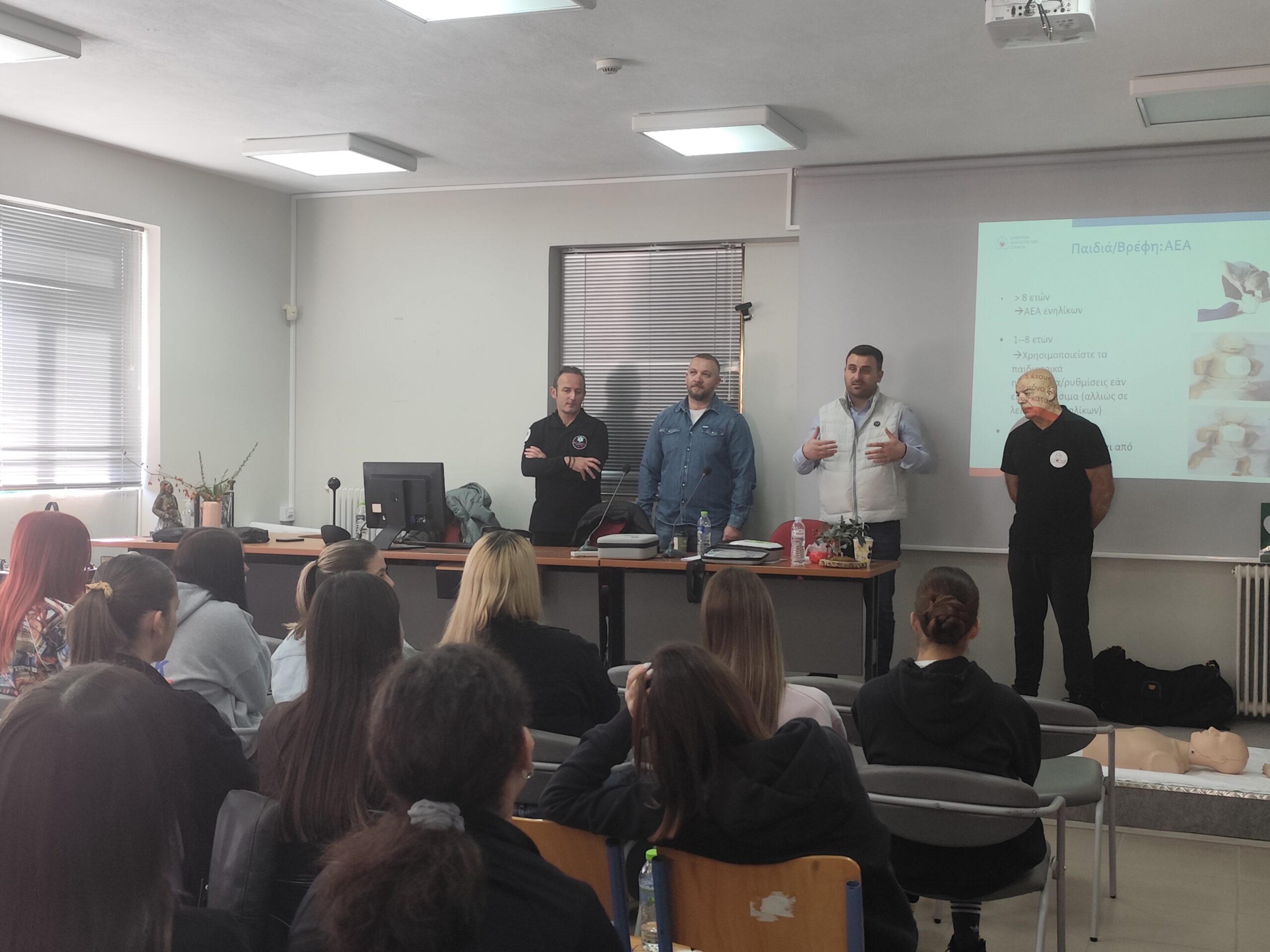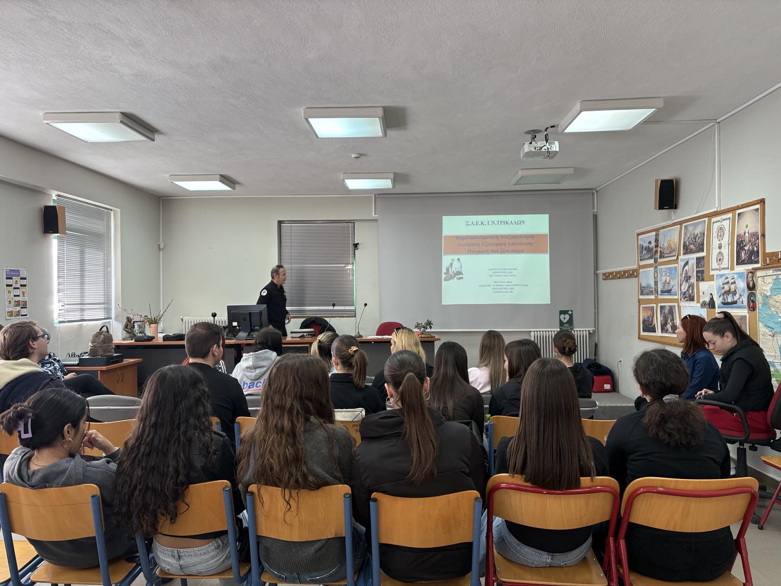 Η αρχή του προγράμματος έγινε στο ΕΠΑΛ Καλαμπάκας, όπου οι μαθητές της Γ’ Λυκείου είχαν την ευκαιρία να εκπαιδευτούν και να ενημερωθούν από πιστοποιημένους εκπαιδευτές σχετικά με βασικές δεξιότητες πρώτων βοηθειών και χρήσιμες πληροφορίες για την αντιμετώπιση έκτακτων περιστατικών.