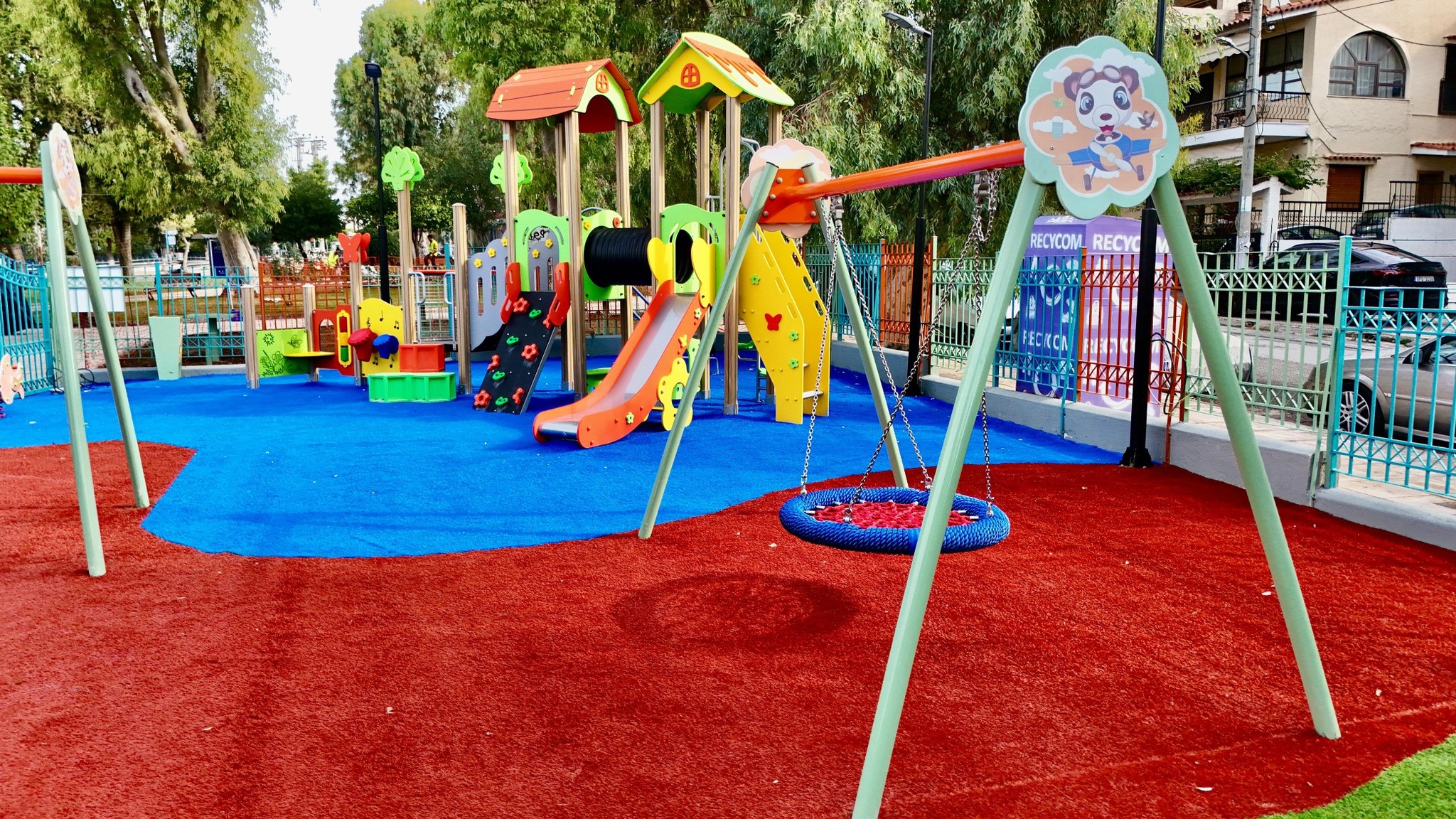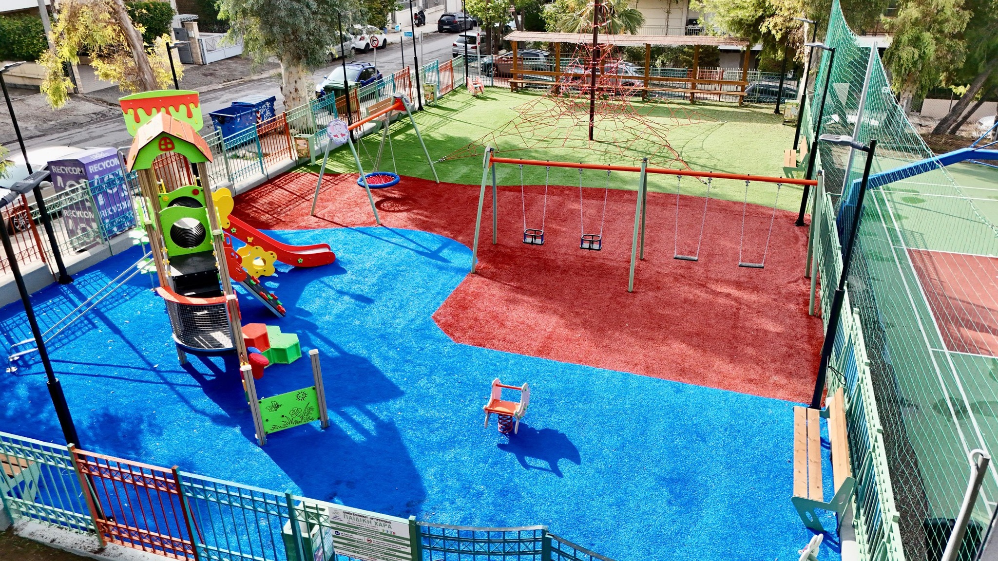 Εδώ, στη νέα παιδική χαρά της Πλατείας Ρήγα Φεραίου (Ανοιχτό Γήπεδο Μπάσκετ Ερμή), δημιουργήσαμε έναν πανέμορφο και ασφαλή χώρο όπου τα παιδιά μπορούν να παίζουν με ασφάλεια. Γύρω από την παιδική χαρά θα προστεθούν κι άλλες υποδομές, όπως υπαίθριο γυμναστήριο, ενώ η πλατεία συνολικά ανακαινίζεται και αλλάζει όψη (ήδη έγινε και το γήπεδο μπάσκετ).