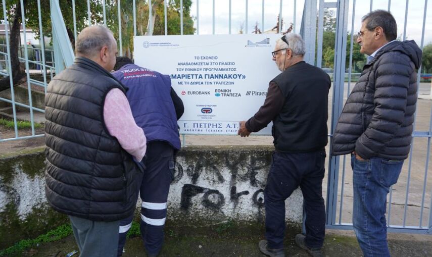 Υλοποιώντας την πρόσφατη απόφαση του Δημοτικού Συμβουλίου της Πάτρας, σήμερα το πρωί εργαζόμενοι του Δήμου μαζί με τον Δήμαρχο Πατρέων, Κώστα Πελετίδη, βρέθηκαν στο 61ο Δημοτικό Σχολείο Πατρών, στο οποίο πραγματοποιήθηκαν εργασίες από το πρόγραμμα «Μαριέττα Γιαννάκου», προχωρώντας στην αφαίρεση των πινακίδων που έχουν τοποθετηθεί «διαφημίζοντας» τις τέσσερις συστημικές τράπεζες.