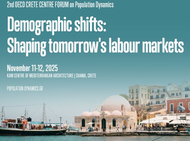 Το 2ο Ετήσιο Συνέδριο του Κέντρου Κρήτης του ΟΟΣΑ για τη Δυναμική των Πληθυσμών με τίτλο: “Η πρόκληση του δημογραφικού: Διαμορφώνοντας τις αγορές εργασίας του μέλλοντος” θα διεξαχθεί την Τρίτη 11 Νοεμβρίου και την Τετάρτη 12 Νοεμβρίου στο Κέντρο Αρχιτεκτονικής Μεσογείου στα Χανιά, σε συνεργασία με τον Δήμο Χανίων και το Οικονομικό Φόρουμ των Δελφών.