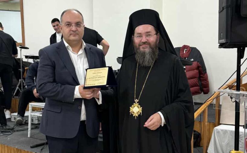 Βαρθολομαίος, απένειμε τιμητική πλακέτα στον Δήμαρχο, ο οποίος ευχαρίστησε τον πρωτοπρεσβύτερο π. Πολύκαρπο Κοντοζίδη και το Εκκλησιαστικό Συμβούλιο για την αναγνώριση της κοινωνικής προσφοράς του Δήμου.
