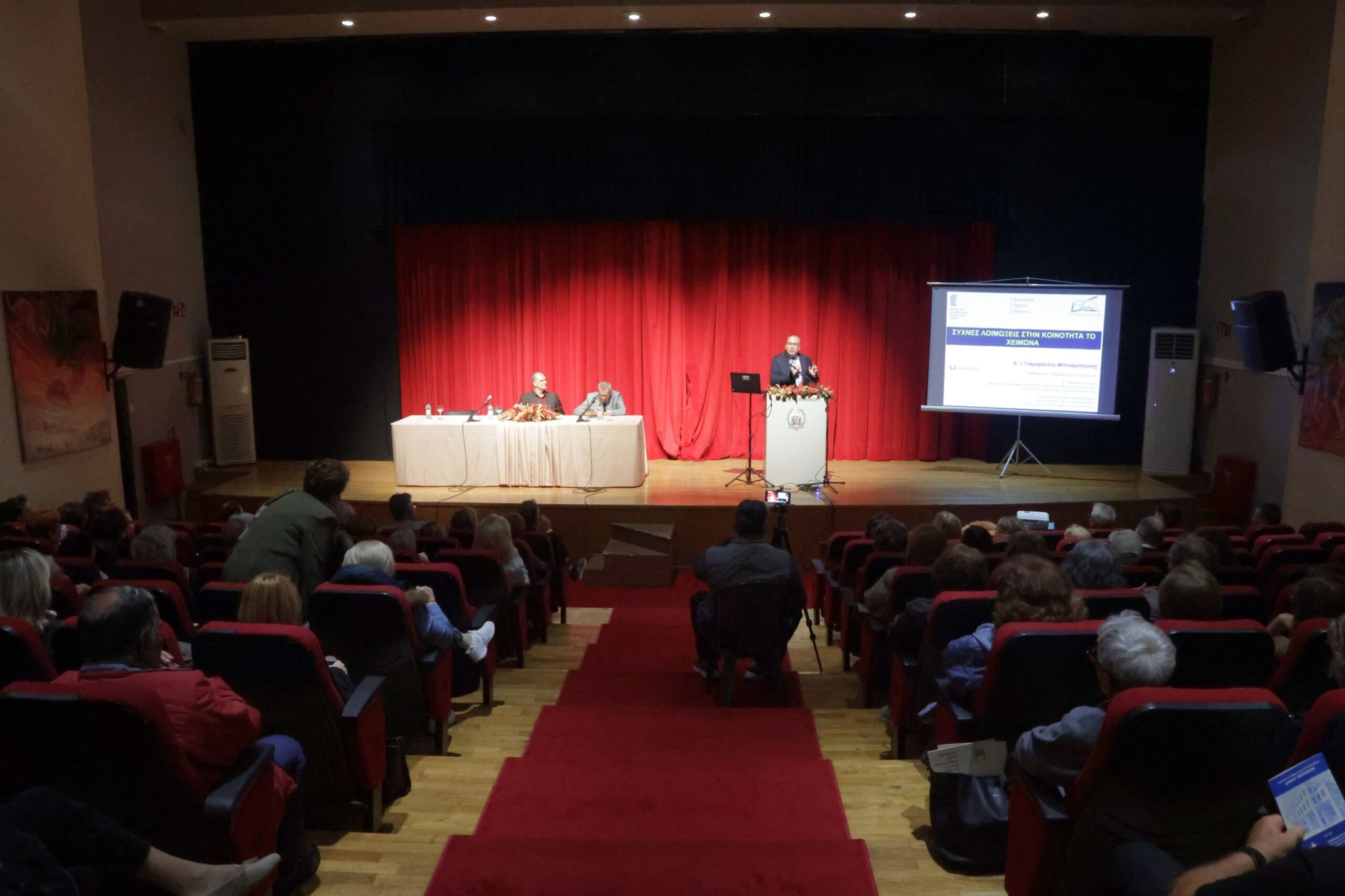Κεντρικοί ομιλητές της διάλεξης ήταν ο καθηγητής Παθολογίας – Λοιμωξιολογίας κ. Ευάγγελος Ι. Γιαμαρέλλος-Μπουρμπούλης και ο επίκουρος καθηγητής Υγιεινής και Επιδημιολογίας κ. Γκίκας Μαγιορκίνης, οι οποίοι παρουσίασαν με σαφήνεια και επιστημονική τεκμηρίωση τις πιο πρόσφατες εξελίξεις στον τομέα των λοιμώξεων και των εμβολίων.