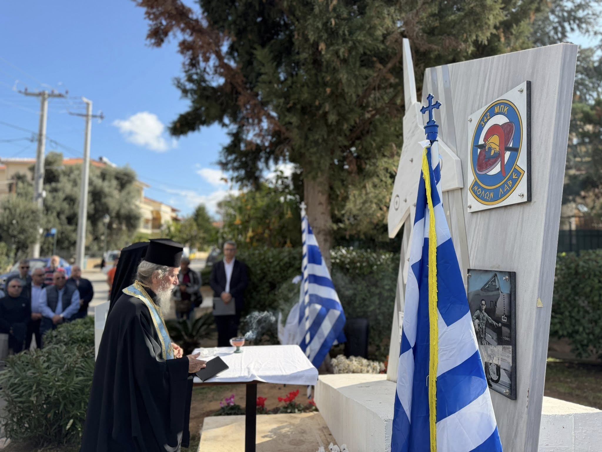 Παρουσία πλήθους αιρετών, εκπροσώπων της Πολεμικής Αεροπορίας, εκπροσώπων του Πανελλήνιου Συλλόγου Οικογενειών Πεσόντων Αεροπόρων (ΠΑ.ΣΟΙ.ΠΑ), συγγενών, φίλων, συμμαθητών του πεσόντα, αλλά και απλών πολιτών που τίμησαν με δέος και σεβασμό τη μνήμη του ήρωα, η τελετή άρχισε με το τρισάγιο που τέλεσε ο εκπρόσωπος του Σεβασμιότατου Μητροπολίτη Κηφισίας, Αμαρουσίου, Ωρωπού & Μαραθώνος, κ.κ. Κυρίλλου, ο Πανοσ. Αρχιμ. ιεροκήρυξ της Ιεράς Μητροπόλεως Κηφισίας Αμαρουσίου, Ωρωπού & Μαραθώνος π. Νικάνωρ Καραγιάννης και ο Αρχιμ. π. Θεόδωρος Γρύλλης από τον Ι.Ν. Αγίου Γεωργίου.