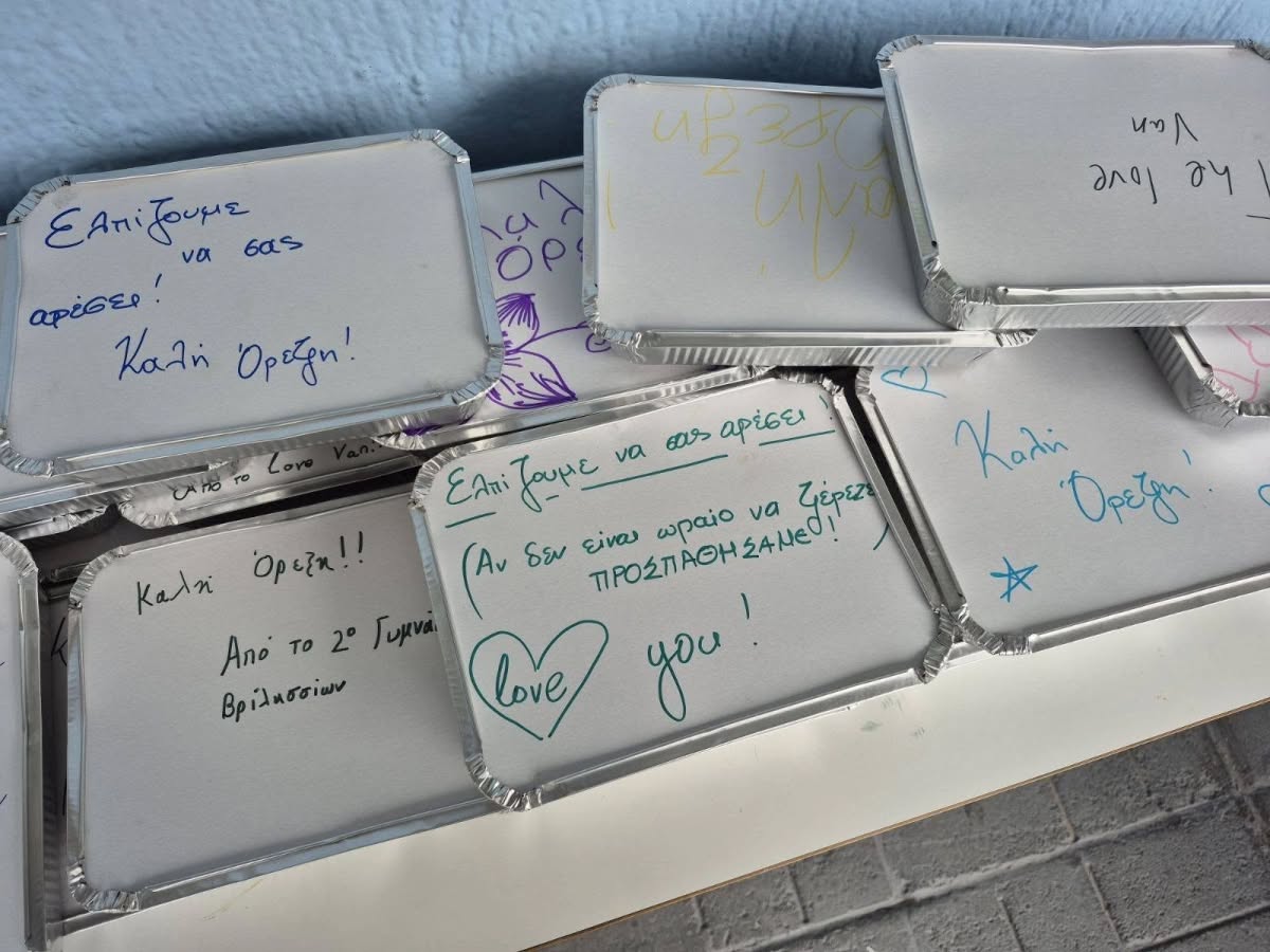 Ιδιαίτερο στοιχείο της πρωτοβουλίας αποτέλεσαν τα σύντομα μηνύματα που οι ίδιοι οι μαθητές έγραψαν πάνω στις μερίδες.