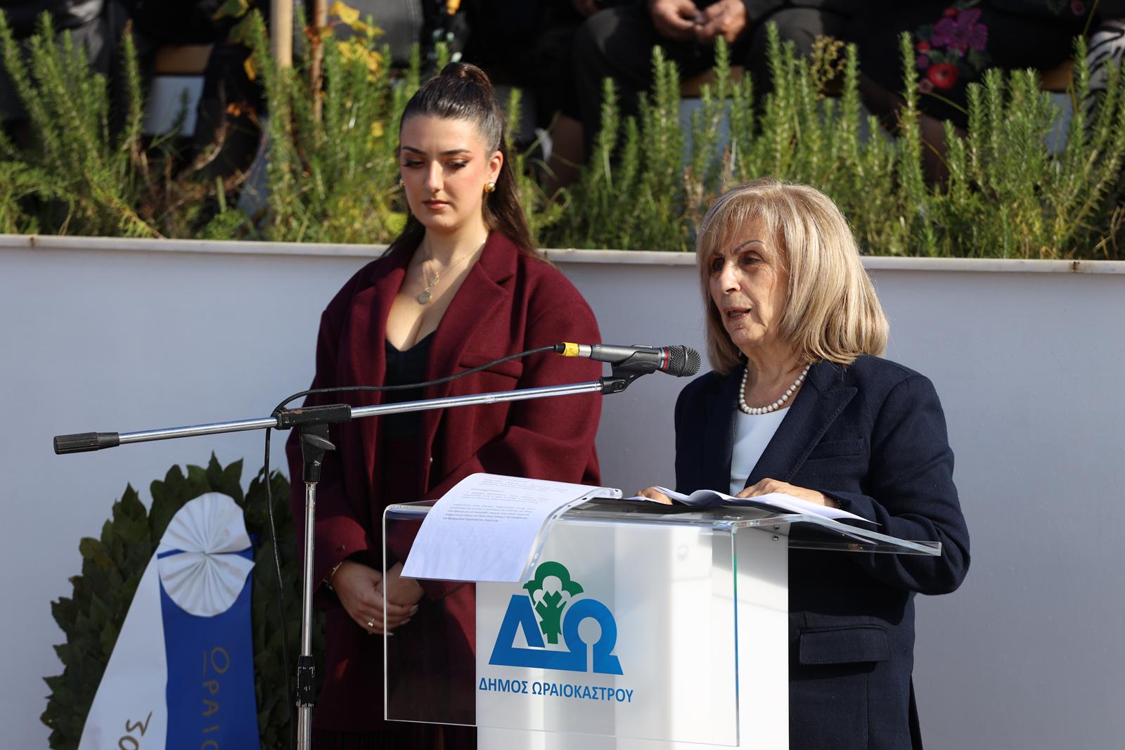Αμέσως μετά τον αγιασμό ακολούθησε κατάθεση στεφάνων, τηρήθηκε ενός λεπτού σιγή και έγινε ανάκρουση του Εθνικού Ύμνου από τα μέλη της Φιλαρμονικής Ορχήστρας του Δήμου Ωραιοκάστρου υπό την διεύθυνση του μαέστρου, Αχιλλέα Ρούσση.