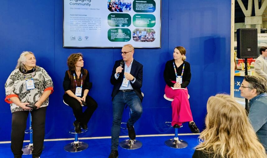 Τον Δήμαρχο Καλαμάτας, εκπροσώπησε ο Αντιδήμαρχος Στρατηγικού Σχεδιασμού, Ψηφιακής Διακυβέρνησης και Κλιματικής Ουδετερότητας Βασίλης Παπαευσταθίου. Κατά τη διάρκεια του πάνελ, ο κ. Παπαευσταθίου παρουσίασε τον τρόπο με τον οποίο η Καλαμάτα μετατρέπει τις ευρωπαϊκές πολιτικές δεσμεύσεις για κλιματική ουδετερότητα σε απτά αποτελέσματα, εστιάζοντας: