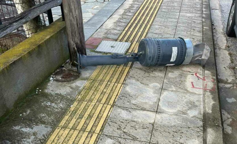 Τα σιδερένια καλάθια μεταφέρθηκαν σε φορτηγό του Δήμου και τις επόμενες ημέρες συνεργείο θα προχωρήσει σε επανασυγκόλληση στις αρχικές τους θέσεις.