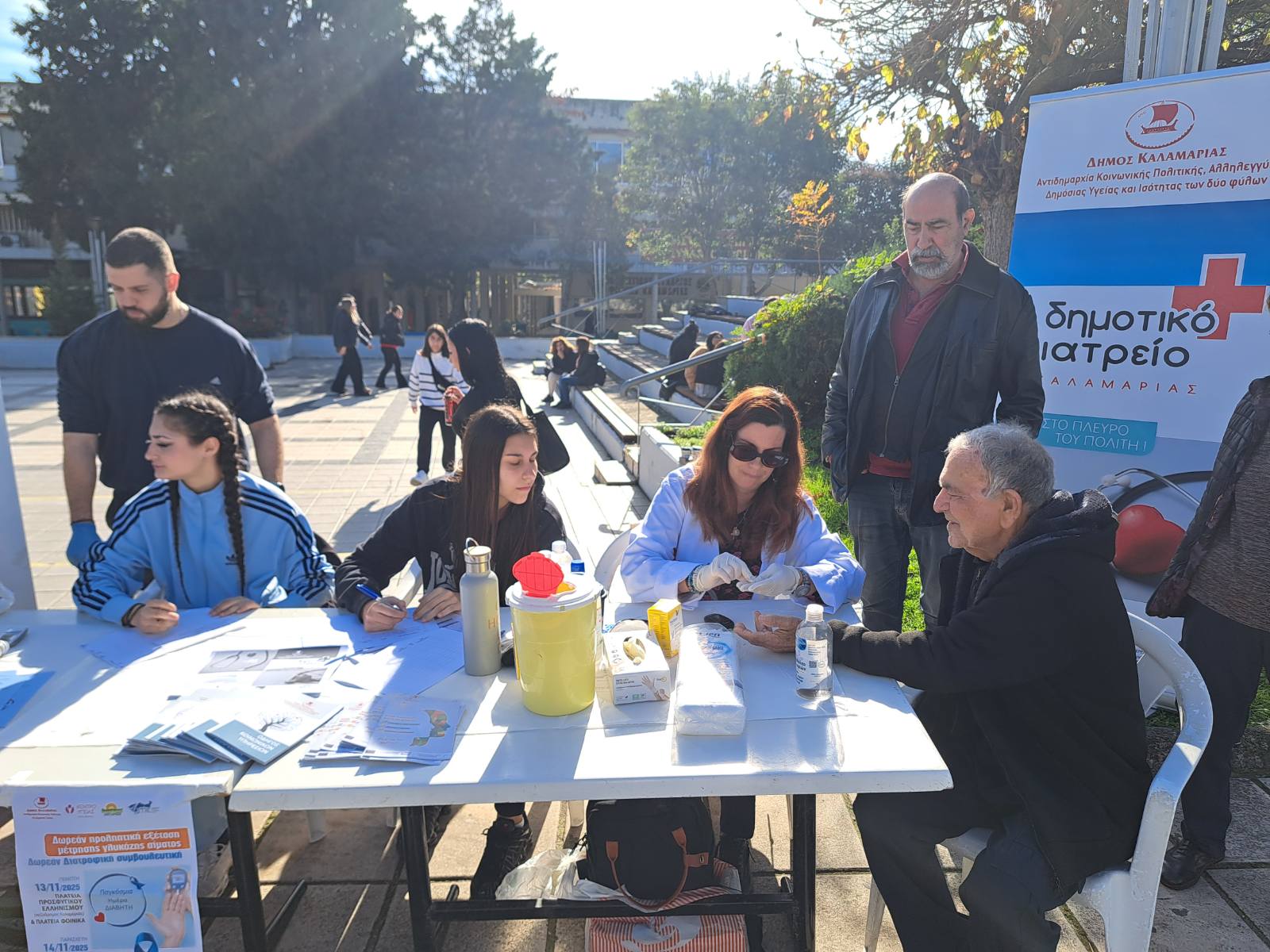 Ο Δήμος Καλαμαριάς διοργάνωσε με επιτυχία διήμερες εκδηλώσεις για την Παγκόσμια Ημέρα Διαβήτη, προσελκύοντας περισσότερους από 200 πολίτες που ενημερώθηκαν και συμμετείχαν σε δωρεάν μετρήσεις γλυκόζης και αρτηριακής πίεσης. Οι δράσεις πραγματοποιήθηκαν σε συνεργασία με υγειονομικούς φορείς και τον Σύλλογο Διαβητικών Ν.