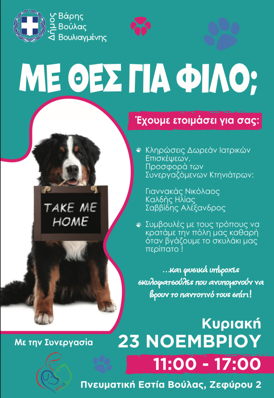 - Ο Δήμος Βάρης Βούλας Βουλιαγμένης διοργανώνει εκδήλωση υιοθεσίας σκύλων την Κυριακή.