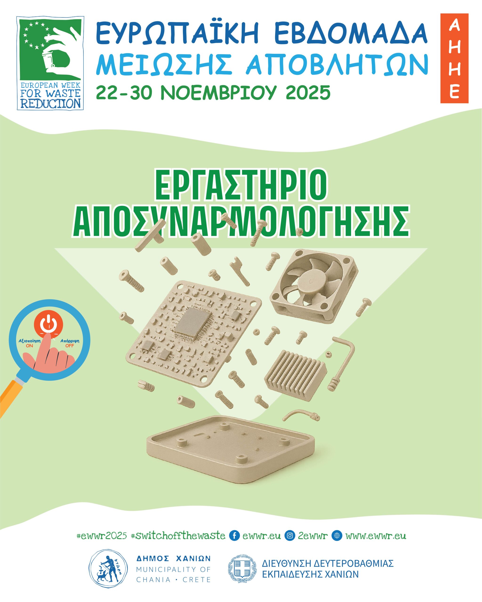 Οι δράσεις του Δήμου Χανίων για την Ευρωπαϊκή Εβδομάδα Μείωσης Αποβλήτων θα συνεχιστούν καθ’ όλη τη διάρκεια της εβδομάδας.
