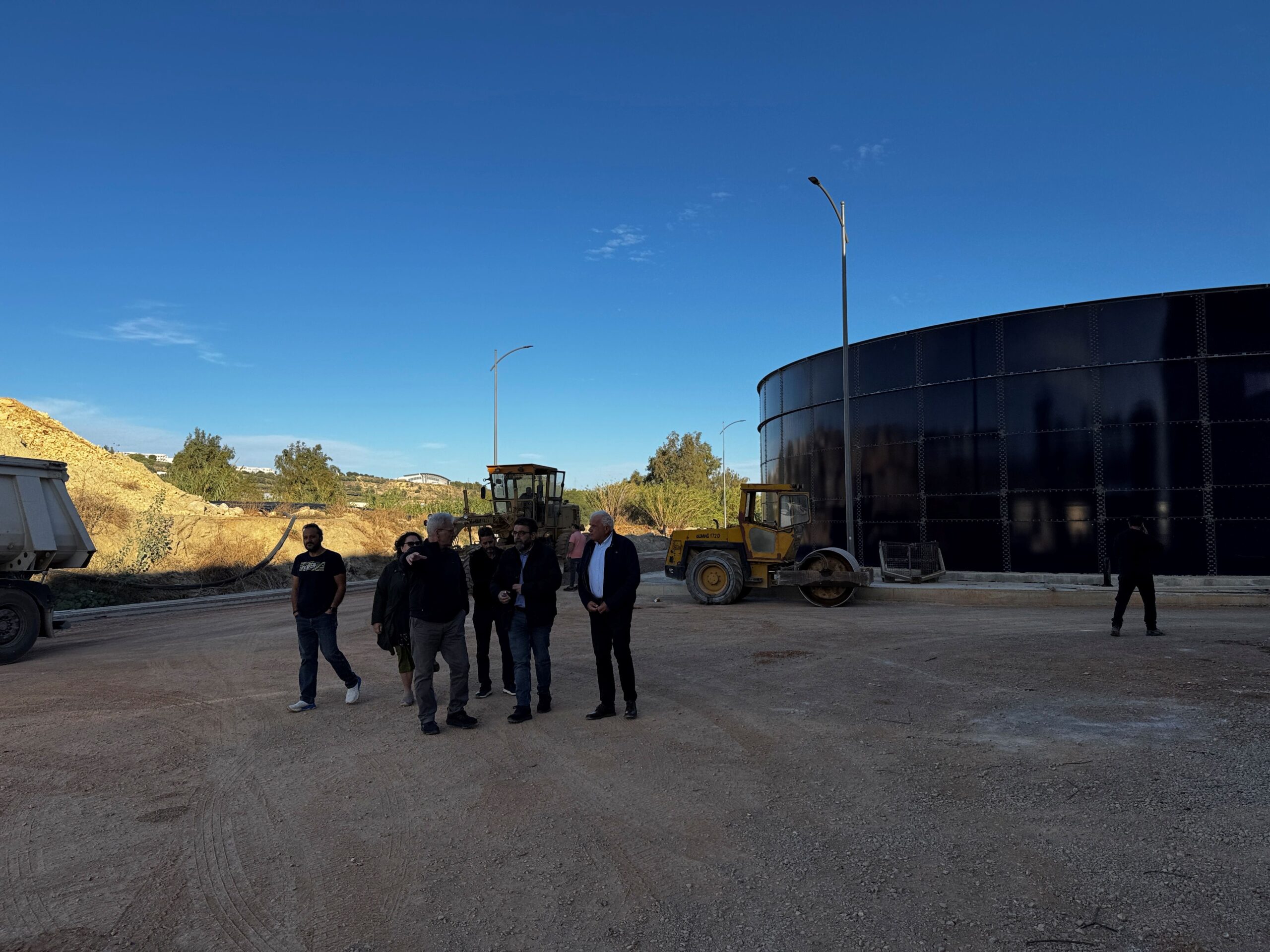 «Το συγκρότημα επεξεργασίας της λυματολάσπης βρίσκεται ήδη σε δοκιμαστική λειτουργία, από το οποίο θα μεταφέρεται η λυματολάσπη στην εγκατάσταση ηλιακής ξήρανσης η οποία επίσης βρίσκεται σε εξέλιξη ως έργο. Δίπλα βρίσκεται η Μονάδα Τριτοβάθμιας Επεξεργασίας Λυμάτων η οποία θα ολοκληρωθεί μέχρι τα μέσα του 2026 και από την οποία θα αποδοθεί εξαπλάσια ποσότητα αρδευτικού νερού. Είναι το νερό το οποίο μετά από την επεξεργασία θα μπορεί να αρδεύει δενδρικές καλλιέργειες αλλά και αστικό πράσινο σε μια ποσότητα που συνολικά θα φτάνει τα 36.000 κυβικά ημερησίως».