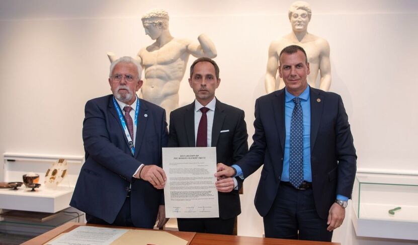 Αντίστοιχα, στο ανακαινισμένο Μουσείο Σύγχρονων Ολυμπιακών Αγώνων Ολυμπίας, σε διοργάνωση του Δήμου Αρχαίας Ολυμπίας, οι τρεις Δήμαρχοι επανέλαβαν τη δέσμευσή τους, σφραγίζοντας εκ νέου την Ιερή Συνθήκη και υπενθυμίζοντας ότι ο Ολυμπισμός παραμένει διαχρονικό μήνυμα ανθρωπισμού, συναδέλφωσης και παγκόσμιας ειρήνης.
