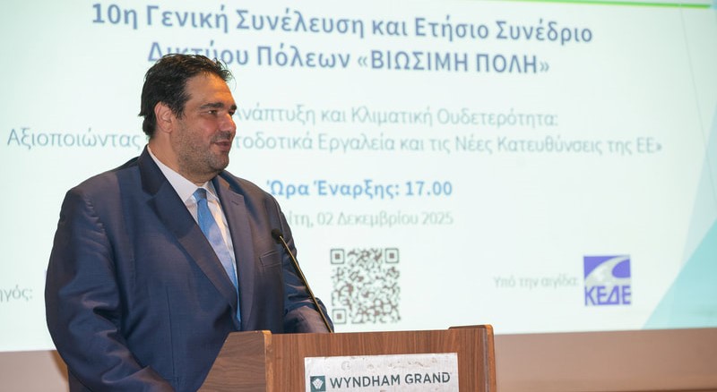 Το Δίκτυο Πόλεων «ΒΙΩΣΙΜΗ ΠΟΛΗ» πραγματοποίησε τη 10η Γενική του Συνέλευση και το Ετήσιο Συνέδριο στο ξενοδοχείο Wyndham Grand Athens την Τρίτη, 02 Δεκεμβρίου 2025 με κεντρικό θέμα «Βιώσιμη Ανάπτυξη και Κλιματική Ουδετερότητα: Αξιοποιώντας τα Χρηματοδοτικά Εργαλεία και τις Νέες Κατευθύνσεις της ΕΕ». Χορηγός της εκδήλωσης ήταν η ALPHA BANK, ενώ το Συνέδριο διοργανώθηκε υπό την αιγίδα της Κεντρικής Ένωσης Δήμων Ελλάδος (ΚΕΔΕ).