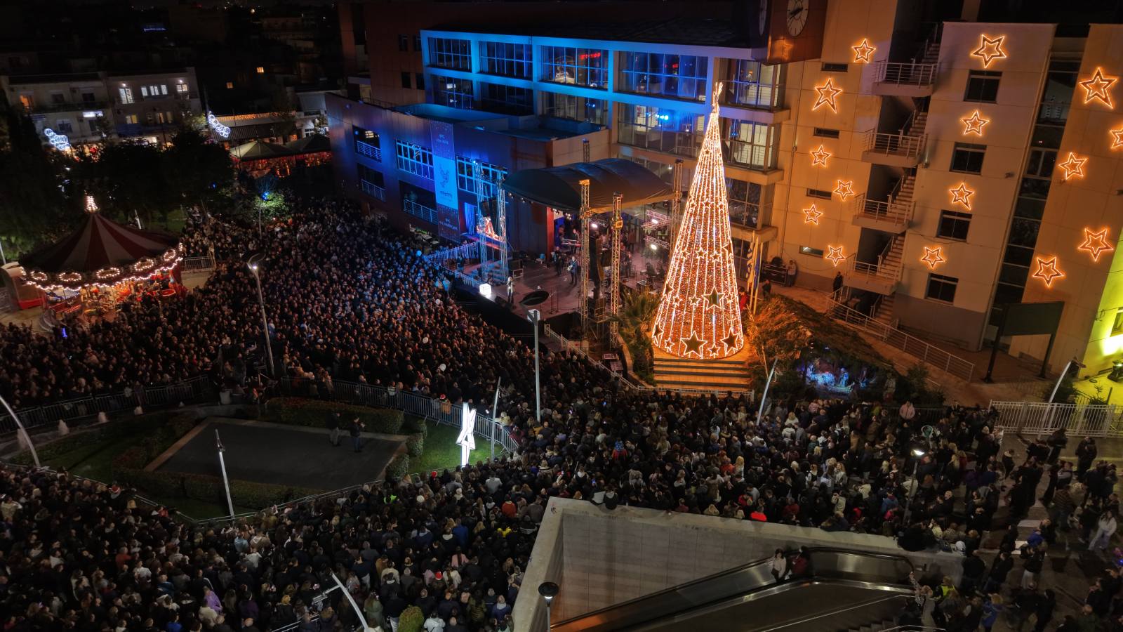 - Δεκάδες χιλιάδες πολίτες συγκεντρώθηκαν στο Περιστέρι για τη φωταγώγηση του Χριστουγεννιάτικου Δέντρου στις 9 Δεκεμβρίου 2025.