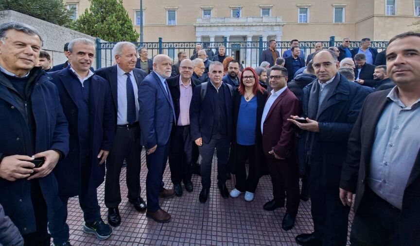 - Δήμαρχοι και αιρετοί από όλη την Ελλάδα διαμαρτύρονται μπροστά από τη Βουλή κατά την ψήφιση του προϋπολογισμού για το 2026.