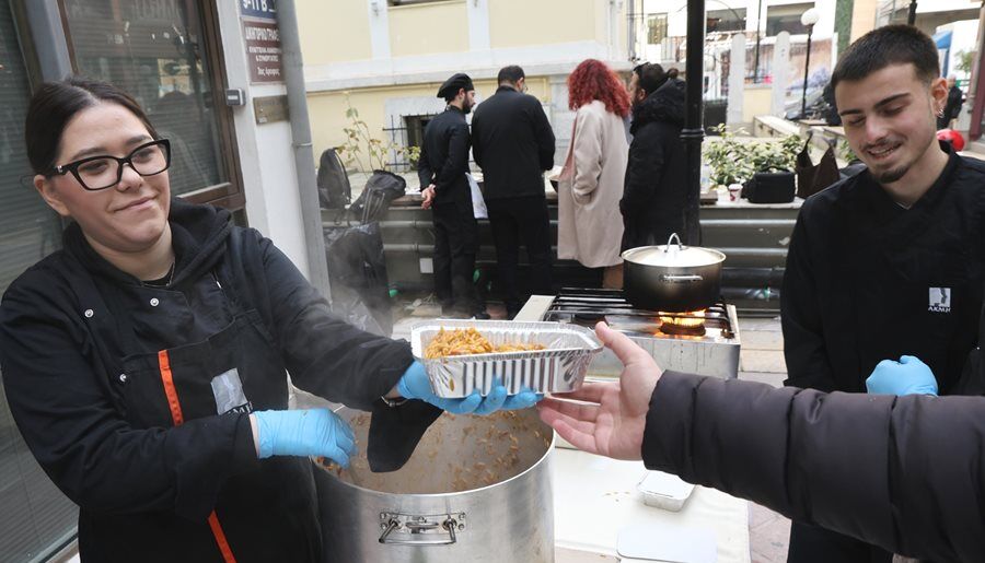 Οι σεφ του ΙΕΚ Ακμή ετοίμασαν με μεράκι γεύματα που διανεμήθηκαν μαζί με τα πακέτα σε περίπου 300 οικογένειες, ενώ τα παιδιά έλαβαν και δώρα.