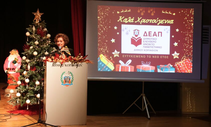 Σε κλίμα γιορτινό, κατανυκτικό και ιδιαίτερα ζεστό πραγματοποιήθηκε η τελευταία Επιστημονική Διάλεξη του Δημοτικού Ελεύθερου Ανοιχτού Πανεπιστημίου (Δ.Ε.Α.Π.) του Δήμου Κορινθίων, με κεντρικό θέμα τις «Χριστουγεννιάτικες Μελωδίες».