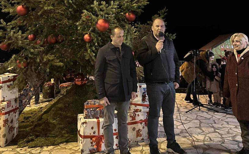 Ο Δήμαρχος Γορτυνίας Ευστάθιος Κούλης και μικροί μαθητές μέτρησαν αντίστροφα και έδωσαν το σύνθημα για τη φωταγώγηση του δέντρου της πλατείας της έδρας του Δήμου.