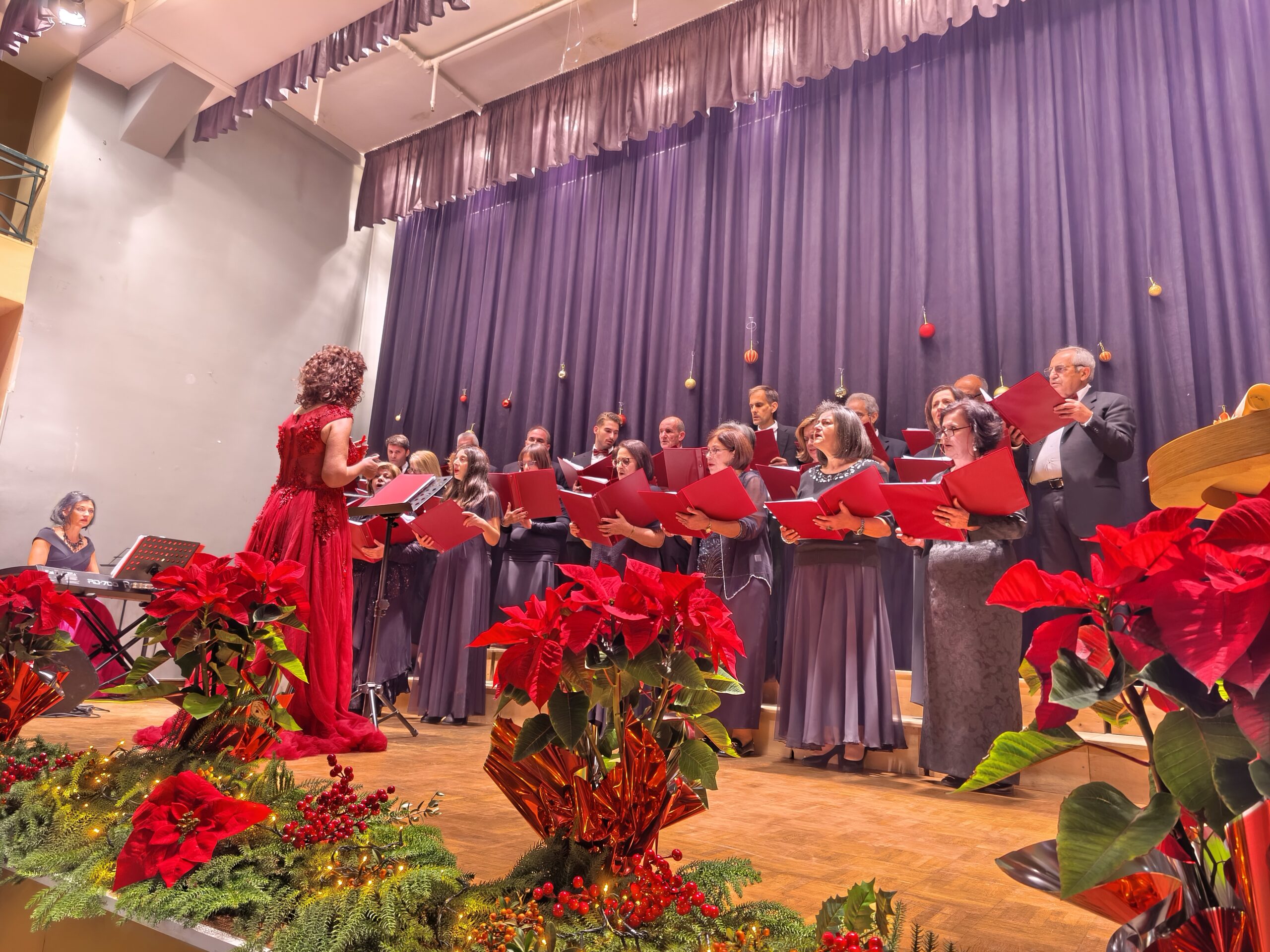 Κεντρικό ρόλο στην εκδήλωση είχε η ιστορική Χορωδία Μυρτουντίων Λεχαινών, η οποία για ακόμη μια φορά απέδειξε γιατί αποτελεί το κορυφαίο πολιτιστικό κεφάλαιο της περιοχής μας. Υπό τη διεύθυνση της Λένας Σουρμελή και με τη συνοδεία της Olena Fedko στο πιάνο, οι χορωδοί χάρισαν στο κοινό ένα υψηλού επιπέδου μουσικό πρόγραμμα με κλασικούς χριστουγεννιάτικους ύμνους και παραδοσιακά κάλαντα. Οι μελωδίες πλημμύρισαν την αίθουσα, αναδεικνύοντας το βαθύτερο νόημα των ημερών και προκαλώντας το θερμό χειροκρότημα των παρευρισκομένων.
