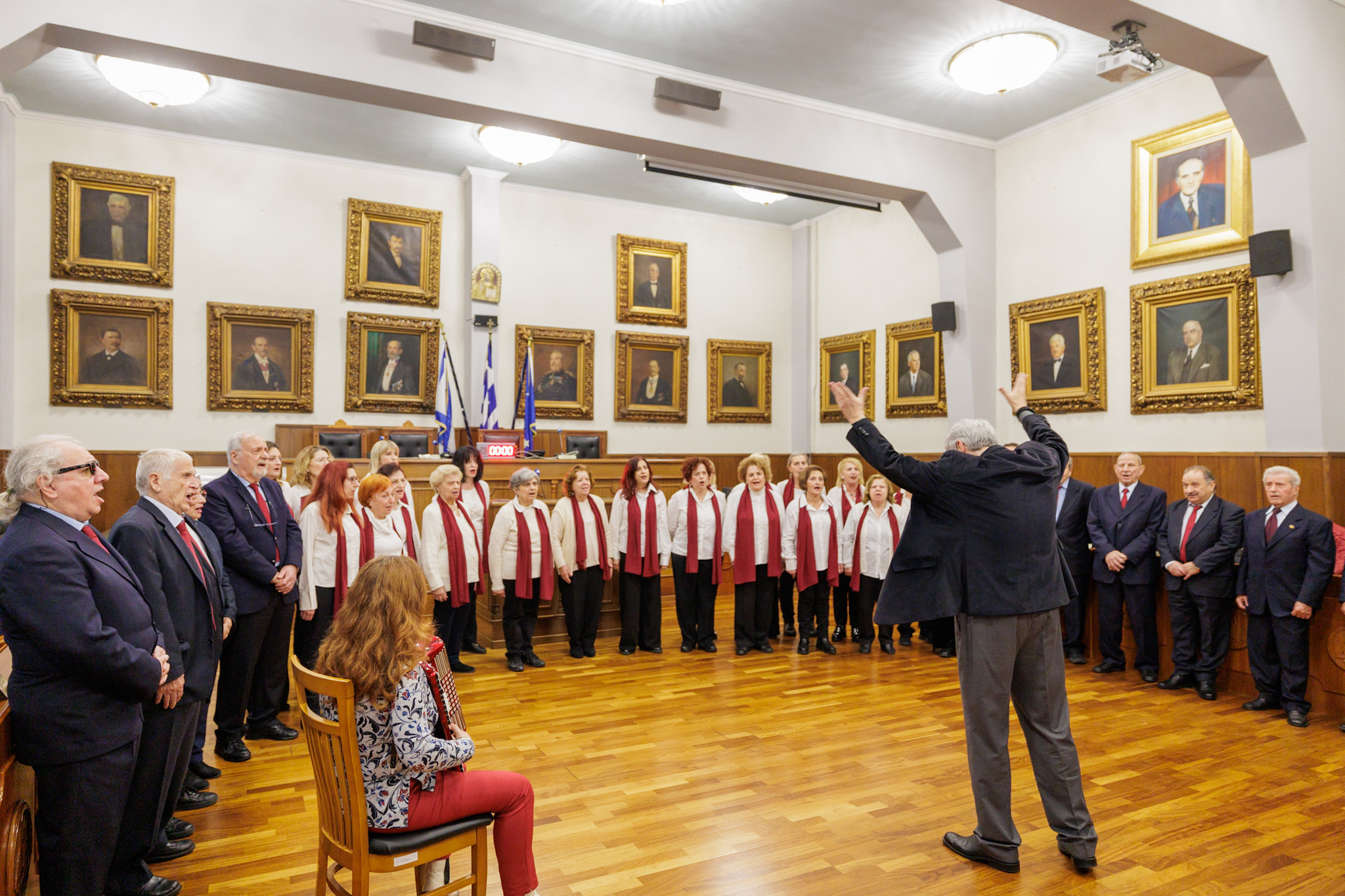 Θέλω να ευχαριστήσω θερμά τη Φιλαρμονική Ορχήστρα Πνευστών του Δήμου Πειραιά, τη χορωδία των Εκπαιδευτηρίων της Ιεράς Μητροπόλεως Πειραιώς, την Ένωση Απανταχού Μανιατών «Η Μάνη» και τον Ψυχαγωγικό Όμιλο Σιδηροδρομικών, που με τα κάλαντα και τα χριστουγεννιάτικα τραγούδια μάς μετέφεραν το εορταστικό κλίμα στο Δημαρχείο.