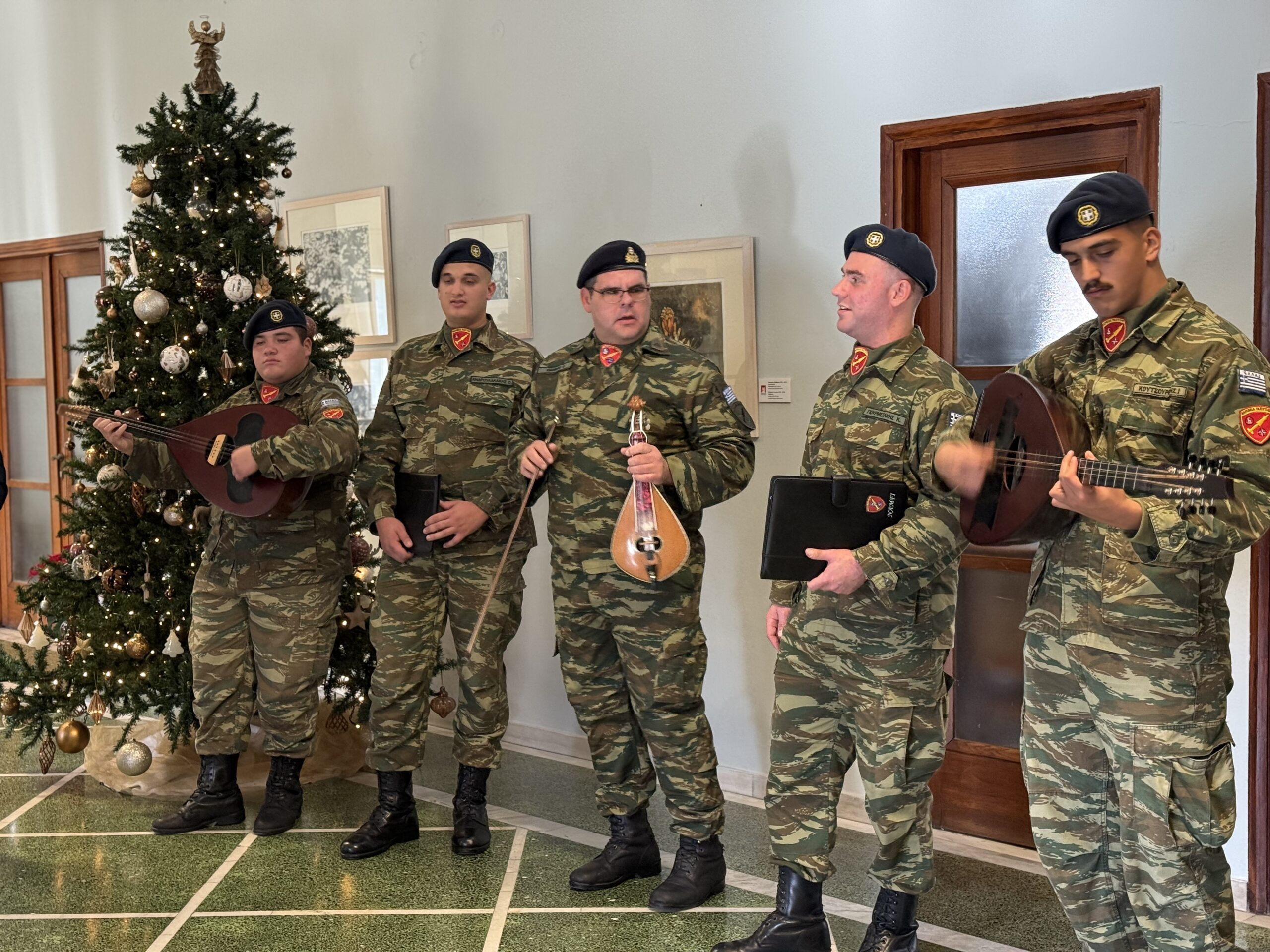 Ο Δήμαρχος Χανίων, Παναγιώτης Σημανδηράκης, ο Γενικός Γραμματέας του Δήμου, Γιώργος Φραγκιαδάκης, ο Πρόεδρος του Δημοτικού Συμβουλίου, Μανώλης Καραγιαννάκης, οι Αντιδήμαρχοι και μέλη του Δημοτικού Συμβουλίου, υποδέχτηκαν με χαρά τους μουσικούς του Πεδίου Βολής, οι οποίοι άνοιξαν τη γιορτινή ατμόσφαιρα με τα κάλαντα, συνοδευόμενοι από την παραδοσιακή λύρα.