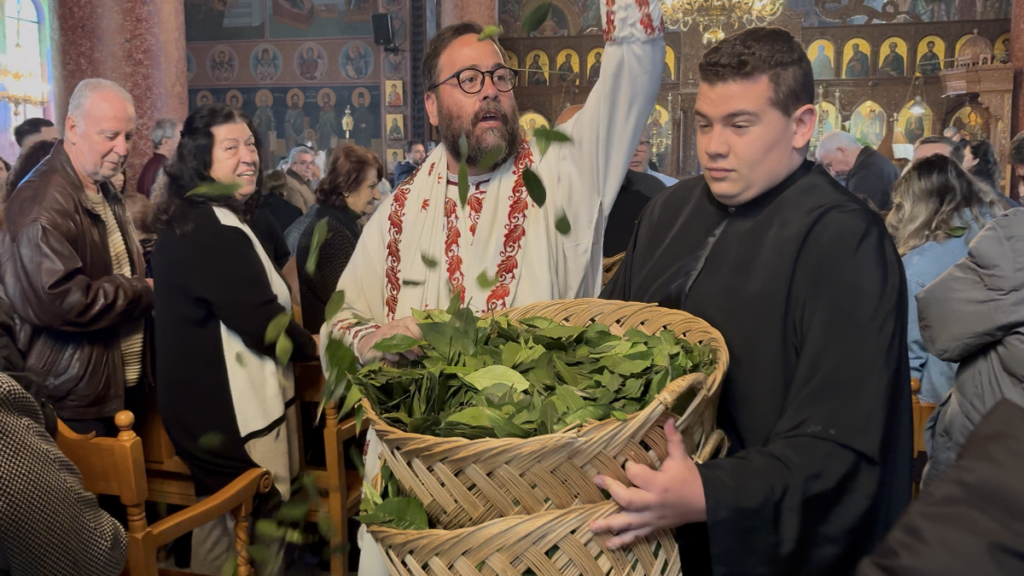 Ο εκκωφαντικός ήχος, οι πολυέλαιοι που ταλαντεύονται και  τα σήμαντρα που ηχούν χαρμόσυνα,  ενώ την ίδια ώρα οι πιστοί ραίνονται από τους ιερείς με φύλλα δάφνης (σύμβολο νίκης),  δημιούργησαν  μια μοναδική και κατανυκτική ατμόσφαιρα.