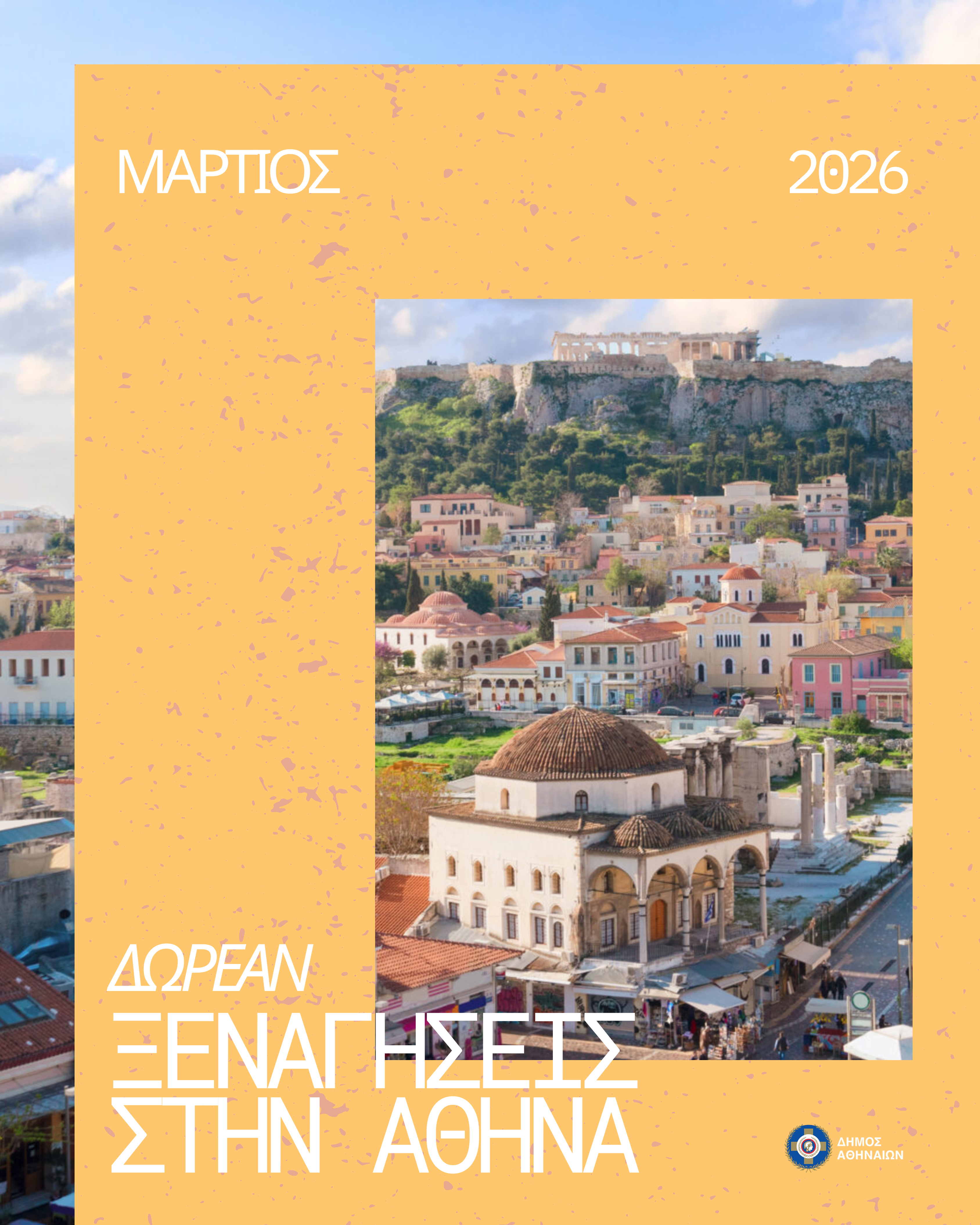 Ο Δήμος Αθηναίων προσφέρει όλο τον Μάρτιο, δωρεάν ξεναγήσεις σε ιστορικούς και αρχαιολογικούς χώρους, μουσεία, καθώς και χώρους πολιτισμού και τέχνης της πόλης. Κάτοικοι και επισκέπτες μπορούν να γνωρίσουν την Αθήνα μέσα από θεματικούς περιπάτους και οργανωμένες επισκέψεις που πραγματοποιούνται σε συνεργασία με το Σωματείο Διπλωματούχων Ξεναγών Αθήνας, με πρωτοβουλία της Εντεταλμένης Δημοτικής Συμβούλου Ιστορικής Ανάδειξης της Πόλης των Αθηνών, Αρτέμιδος Σκουμπουρδή.