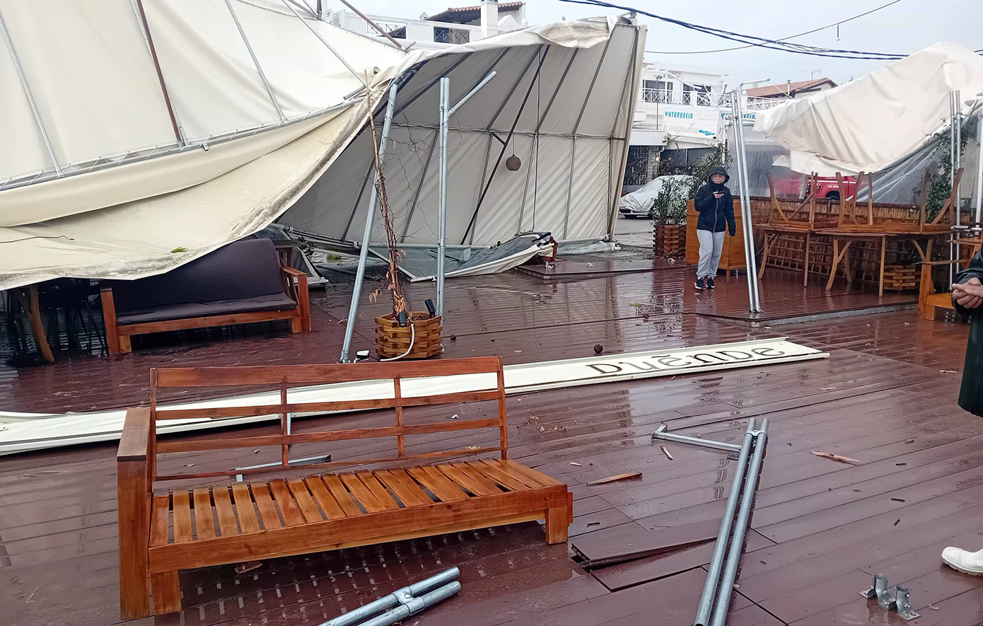 Ισχυροί άνεμοι προκάλεσαν ζημιές σε επιχειρήσεις στην παραλία Μαραθώνα, με τον αντιδήμαρχο Πολιτικής Προστασίας, Ευάγγελο Κυπαρίσση, να κάνει λόγο για ανεμοστρόβιλο.