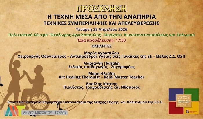 Ο Δήμος Μοσχάτου-Ταύρου συνεχίζοντας τις επιτυχημένες διοργανώσεις με την Ένωση Ελλήνων Σεναριογράφων, φιλοξενεί μια ξεχωριστή εκδήλωση αφιερωμένη στη δύναμη της τέχνης ως μέσου έκφρασης, αποδοχής και κοινωνικής ένταξης.