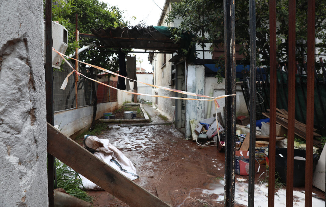Ένα πυροσβεστικό όχημα παραμένει έξω από το σπίτι του 55χρονου που βρήκε τραγικό θάνατο στη Νέα Μάκρη, όταν παρασύρθηκε από ορμητικά νερά και κατέληξε σφηνωμένος κάτω από ένα όχημα.