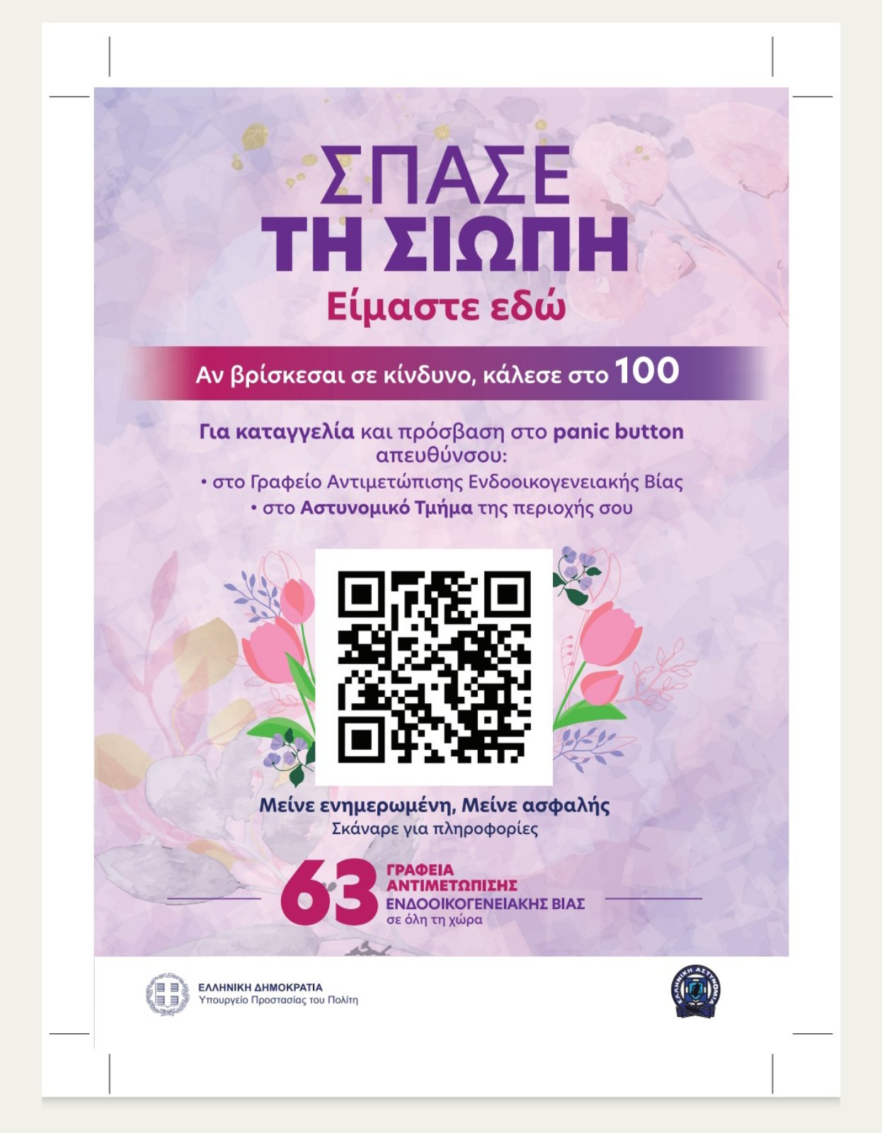 Αντικείμενο της Δράσης ήταν η ανάρτηση σε σημεία αυξημένης επισκεψιμότητας στο Δήμο Εορδαίας, σχετικού αυτοκόλλητου – αφίσας, στην οποία υπάρχει ένας κωδικός QR, που μπορεί να σκαναριστεί και να λάβει ο χρήστης/τρια πληροφορίες με τις πλησιέστερες αστυνομικές υπηρεσίες, στις οποίες μπορεί να απευθυνθεί.