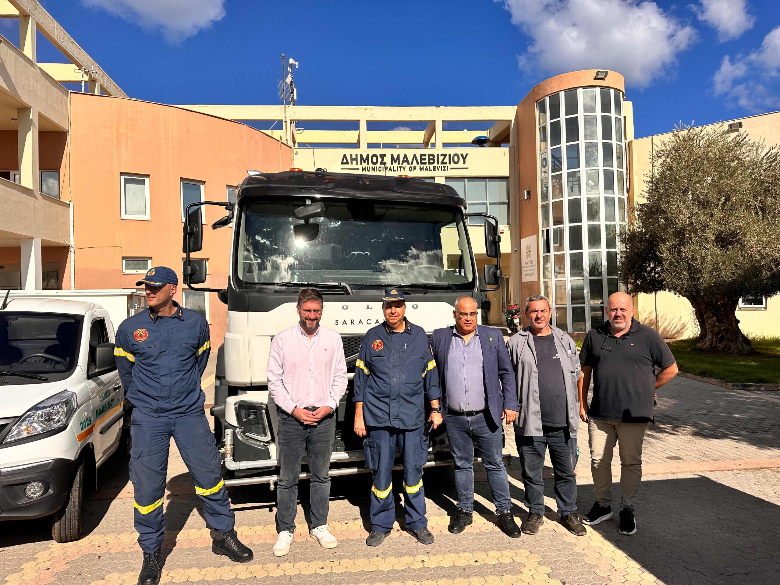Ο Δήμαρχος Μαλεβιζίου, Μενέλαος Μποκέας, ενημέρωσε τον Διοικητή Πυροσβεστικών Υπηρεσιών Κρήτης, Μιχάλη Σεληνιωτάκη, για την παραλαβή της νέας υδροφόρας, επισημαίνοντας ότι το όχημα θα βρίσκεται σε πλήρη διάθεση της Πυροσβεστικής Υπηρεσίας όποτε αυτό απαιτηθεί, συμβάλλοντας έμπρακτα στην ενίσχυση του επιχειρησιακού της έργου.