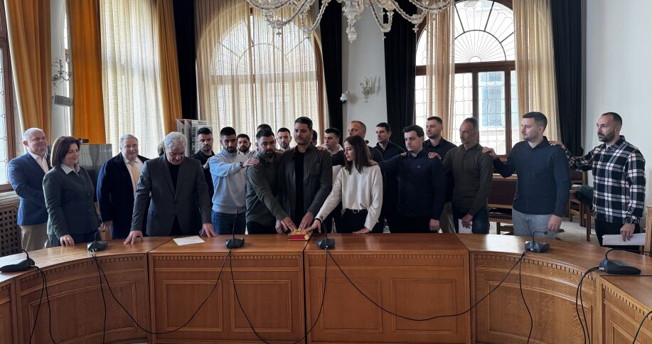 Πραγματοποιήθηκε από το Δήμαρχο Ηρακλείου Αλέξη Καλοκαιρινό η ορκωμοσία 17 νέων Δημοτικών Αστυνομικών, παρουσία των Αντιδημάρχων Πολιτικής Προστασίας & Δημοτικής Αστυνομίας Γιώργου Καραντινού, και Διοίκησης & Τουρισμού Γιώργου Αγριμανάκη, της Γενικής Γραμματέως του Δήμου Μαρίας Σκραφνάκη, της Προϊσταμένης του Τμήματος Δημοτικής Αστυνομίας Παρασκευής Πλατάκη καθώς και στελεχών της Δημοτικής Αστυνομίας, σήμερα, Δευτέρας 23/3 στη Λότζια.