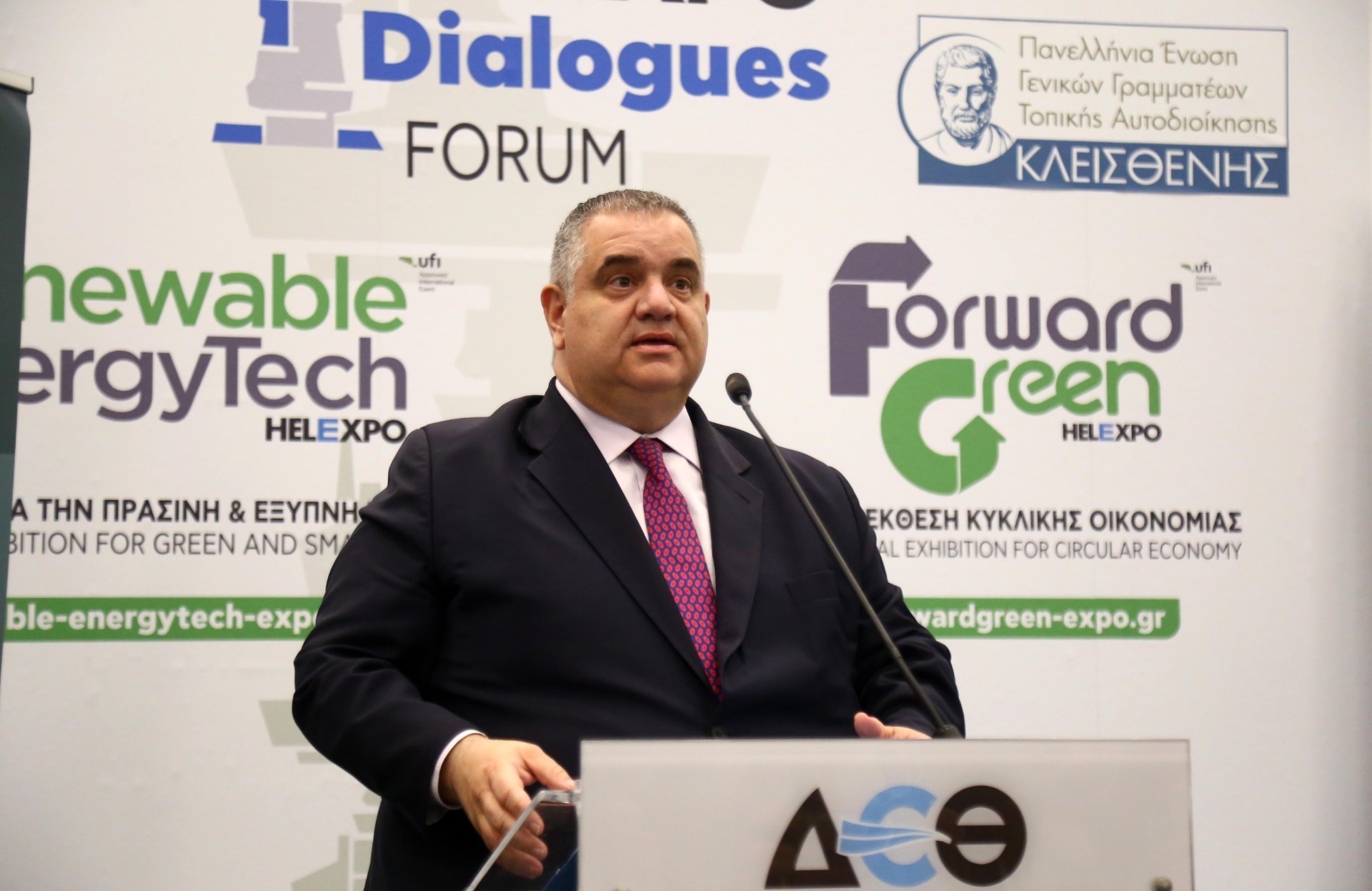 Με τη συμμετοχή κορυφαίων εκπροσώπων της κυβέρνησης, της αυτοδιοίκησης και θεσμικών φορέων πραγματοποιήθηκαν σήμερα το απόγευμα τα εγκαίνια του Επιστημονικού Συνεδρίου της Πανελλήνιας Ένωσης Γενικών Γραμματέων «ΚΛΕΙΣΘΕΝΗΣ», στο πλαίσιο των εκθέσεων Forward Green και Renewable Energy Tech, στο Διεθνές Εκθεσιακό & Συνεδριακό Κέντρο Θεσσαλονίκης.