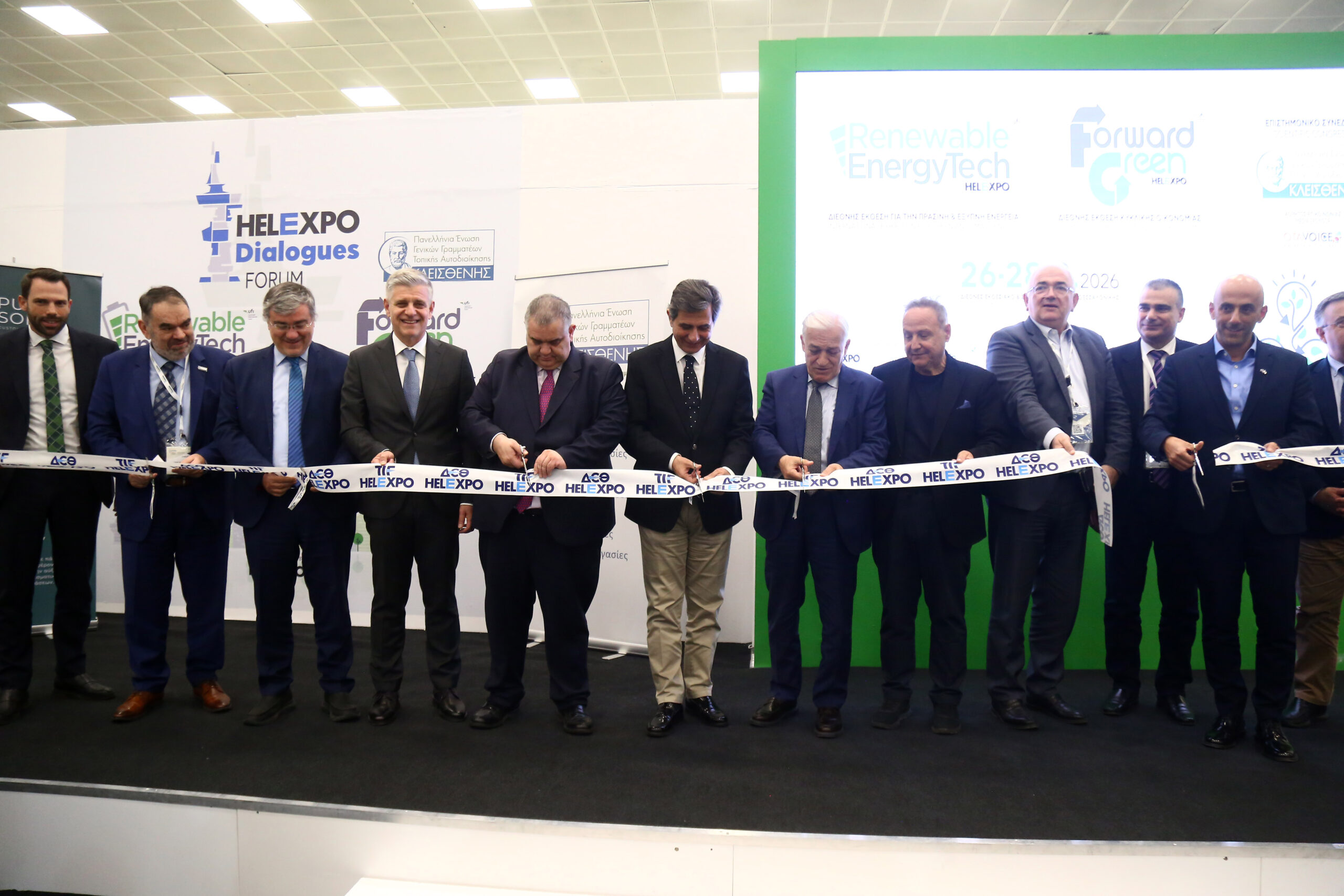 Με ισχυρή θεσμική παρουσία και ουσιαστική παρέμβαση στον δημόσιο διάλογο, η Κεντρική Ένωση Δήμων Ελλάδας (ΚΕΔΕ) συμμετείχε στα εγκαίνια και στις εργασίες του Συνεδρίου της Πανελλήνιας Ένωσης Γενικών Γραμματέων Τοπικής Αυτοδιοίκησης «Κλεισθένης», το οποίο πραγματοποιείται στην Κεντρική Σκηνή του Περιπτέρου 15, στις εγκαταστάσεις της ΔΕΘ-HELEXPO, στο πλαίσιο της έκθεσης «Forward Green» και παράλληλα με την «Renewable Energy Tech».