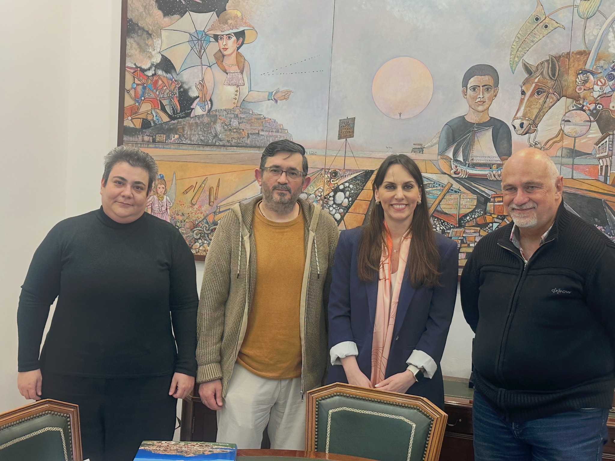 Η πρώτη συνάντηση πραγματοποιήθηκε στο Δημαρχείο, με τη συμμετοχή του Προέδρου του Δημοτικού Συμβουλίου κ. Τριαντάφυλλου Κατή, των Αντιδημάρχων κας Ιωάννας-Ελπίδας Διαματάρη και κ. Δημήτρη Μπουλώτη, καθώς και της Προϊσταμένης της Διεύθυνσης Διοικητικών Υπηρεσιών του Δήμου κας Αργυρής Χαβιά.