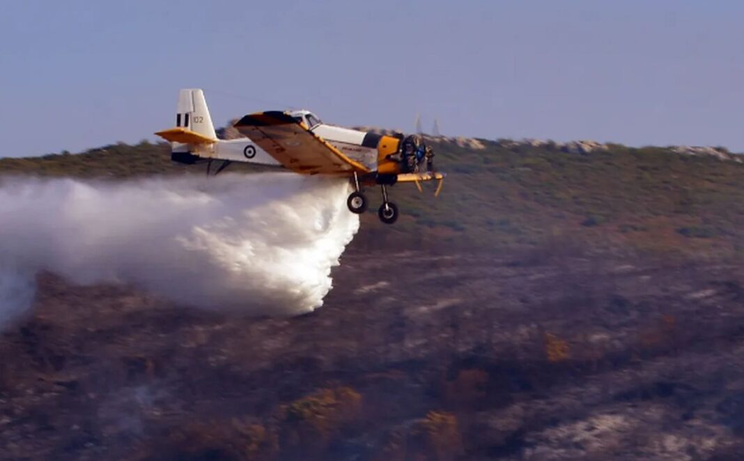 Για την κατάσβεσή της κινητοποιήθηκαν δέκα πυροσβέστες με τέσσερα οχήματα, ενώ στην επιχείρηση συμμετείχαν και δύο ελικόπτερα.