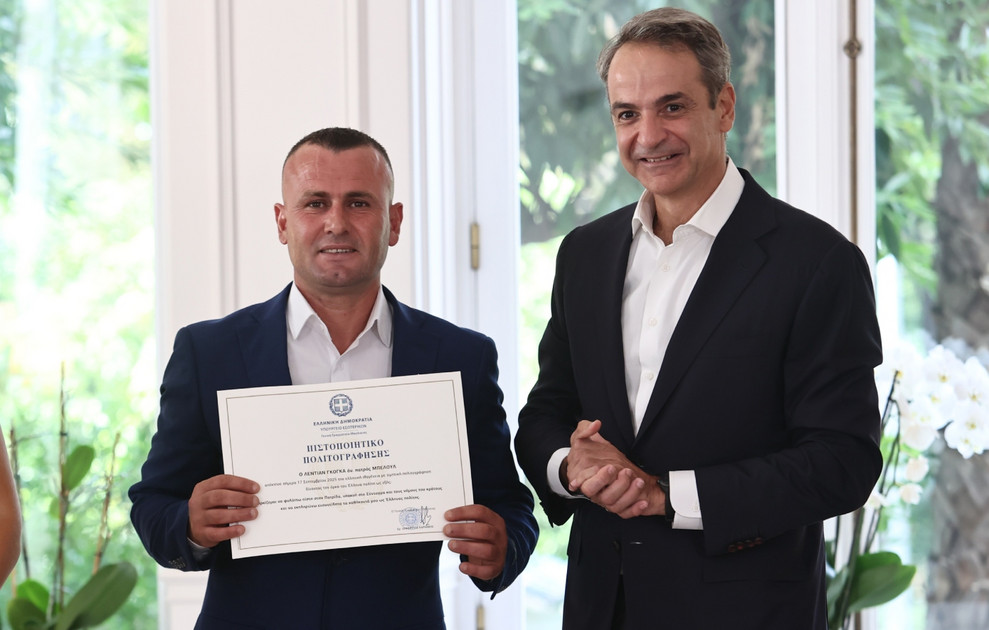 Στο Μέγαρο Μαξίμου ο πρωθυπουργός, Κυριάκος Μητσοτάκης, υπέγραψε την πολιτογράφηση του άνδρα από την Αλβανία που είχε βουτήξει στον ποταμό Άραχθο για να σώσει δύο ανήλικα αγόρια που παρασύρθηκαν από το ρεύμα.
