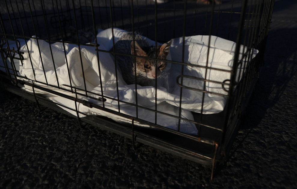Τα γατάκια τοποθετήθηκαν σε κλουβιά για να απομακρυνθούν από τον χώρο της φωτιάς.